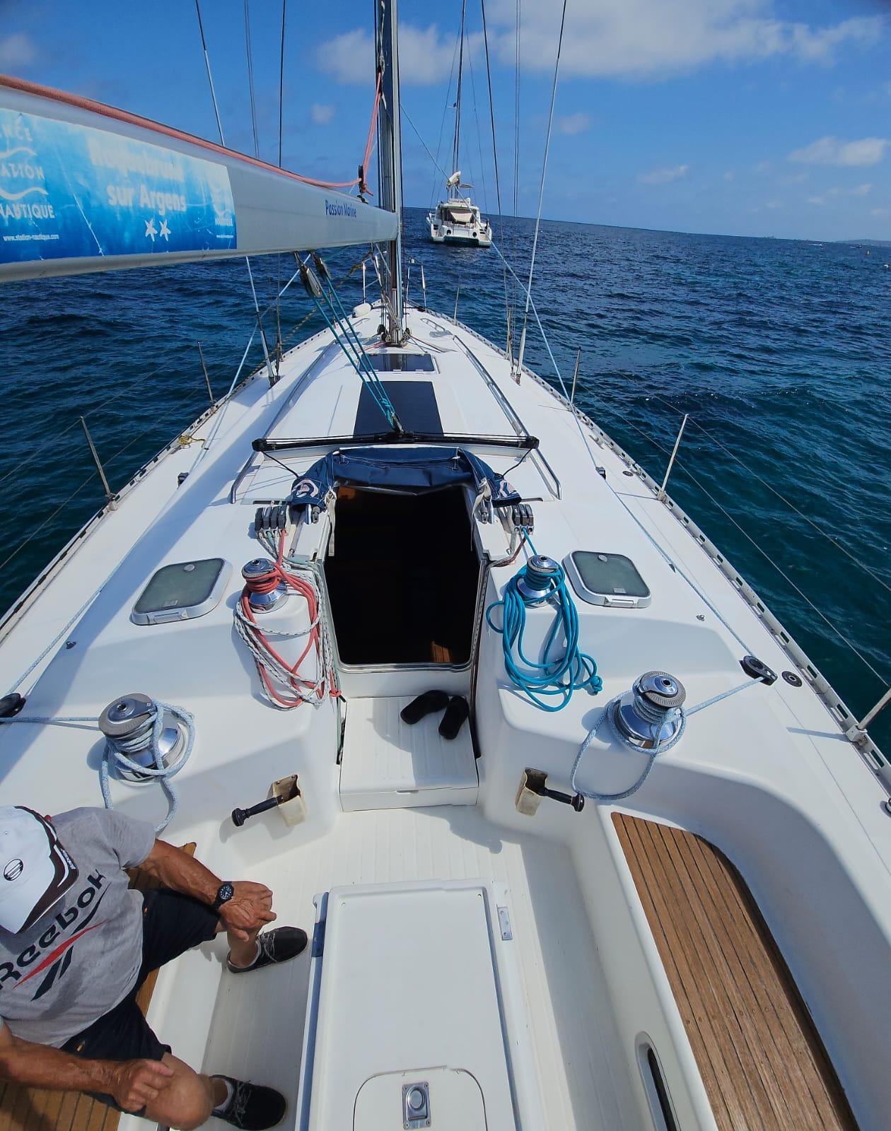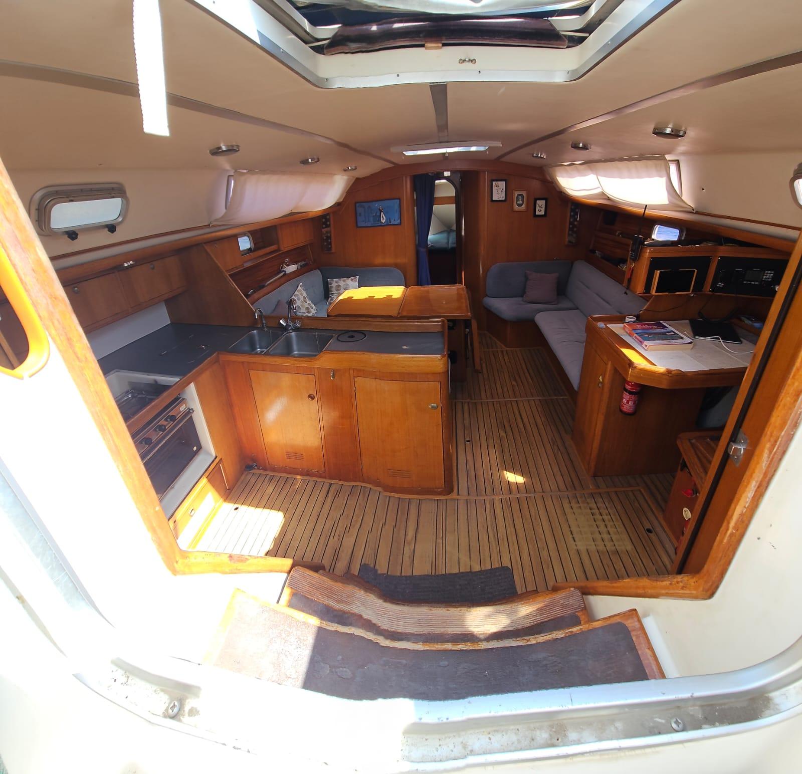 Très autonome, il dispose de 800 litres d’eau douce, d’un panneau solaire de 130 W, d’un guindeau électrique 1000 W, ainsi que d’un mouillage principal de qualité. Le confort est assuré par une cuisine équipée, un chauffe-eau, une douche de pont et une protection complète du cockpit. Annexe récente avec moteur Honda incluse. Voilier prêt pour de belles navigations hauturières, visible dans le Var (83).