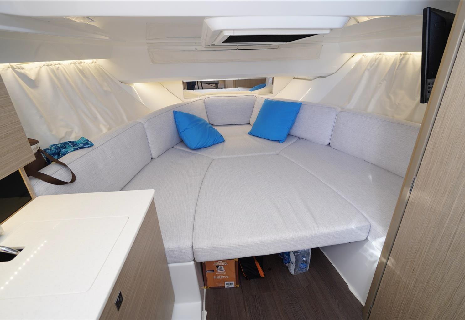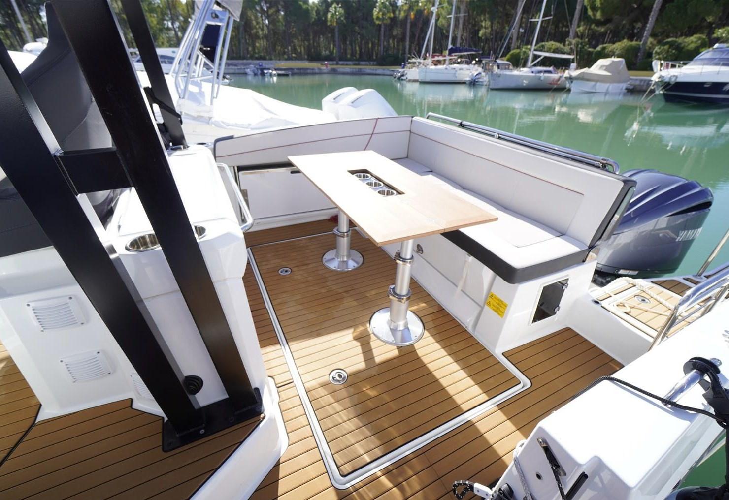 saison 2 ; compteur électronique de chaînes ; toit ouvrant ; toit rigide ; auvent arrière rétractable avec pare-soleil latéral ; auvent avec poteaux en carbone à la proue ; ouverture latérale ; avec des couvertures pour la proue, la poupe et la zone centrale ; des commandes électroniques des moteurs ; pont en teck Synteak ; la médiation de 5 % + TVA de 22 % à payer par l’acheteur (la TVA est calculée sur le montant de la médiation).