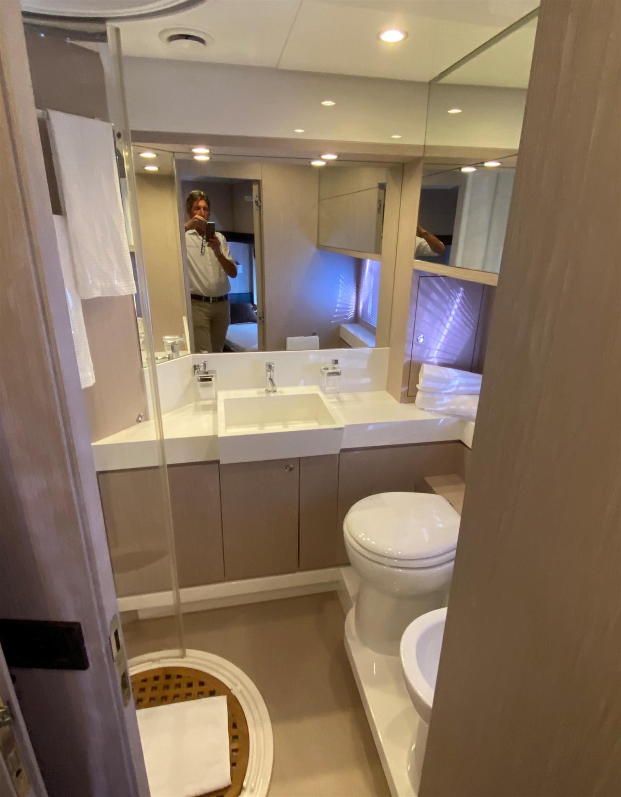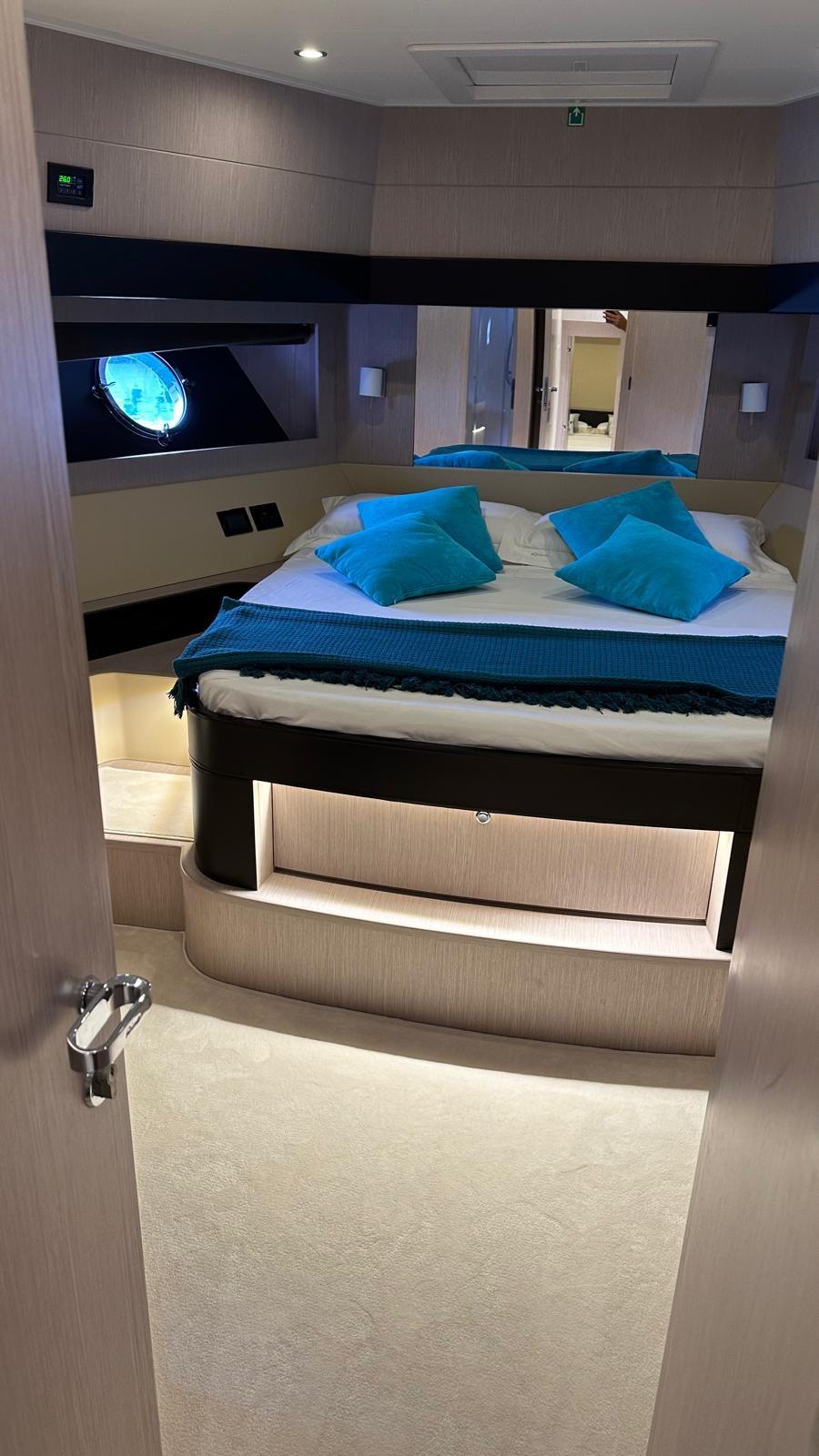 Cuisine, Réfrigérateur extérieur (sul flybridge), Machine à glaçons, Lave et sèche-linge, Lave-vaisselle, Plaque vitrocéramique.