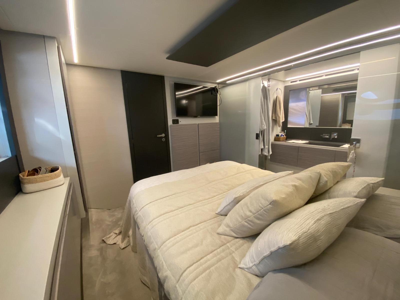 Trim hydraulique, Taquets pliants, Douche de cockpit, Flaps électriques, Garage à annexe, Hard top, Indicateurs de flaps, Lavage de chaine, Spots sous-marins, Passerelle, Cockpit en teck, Prise de quai, Guindeau électrique, Echelle de bain, Stabilisateurs, Annexe, Winch électrique arrière, Winch électrique avant.