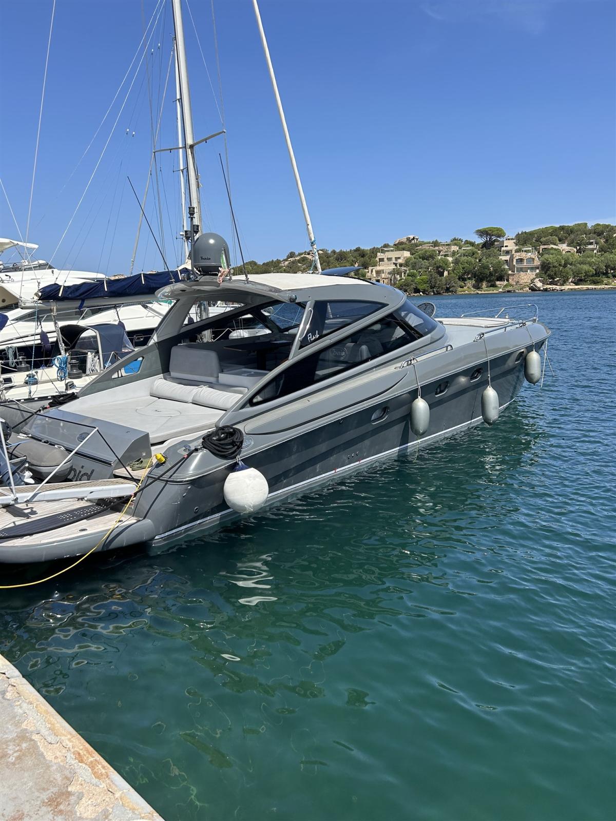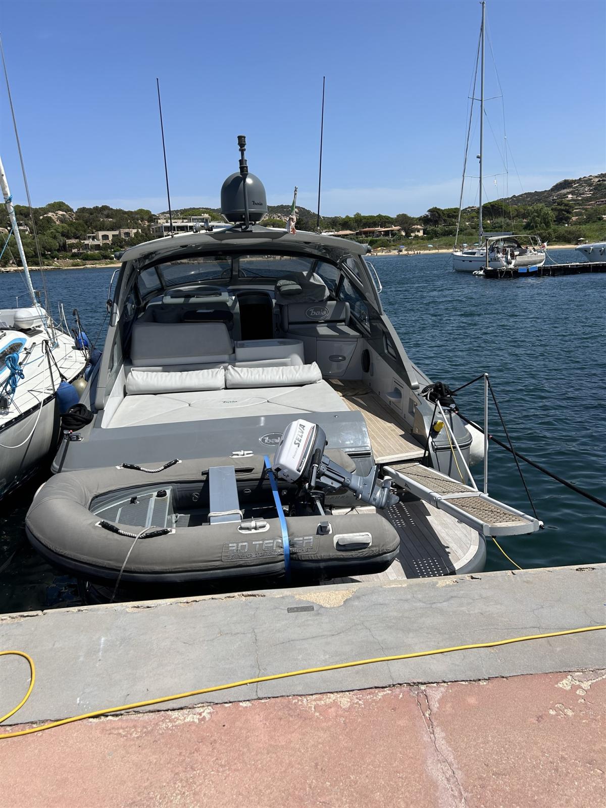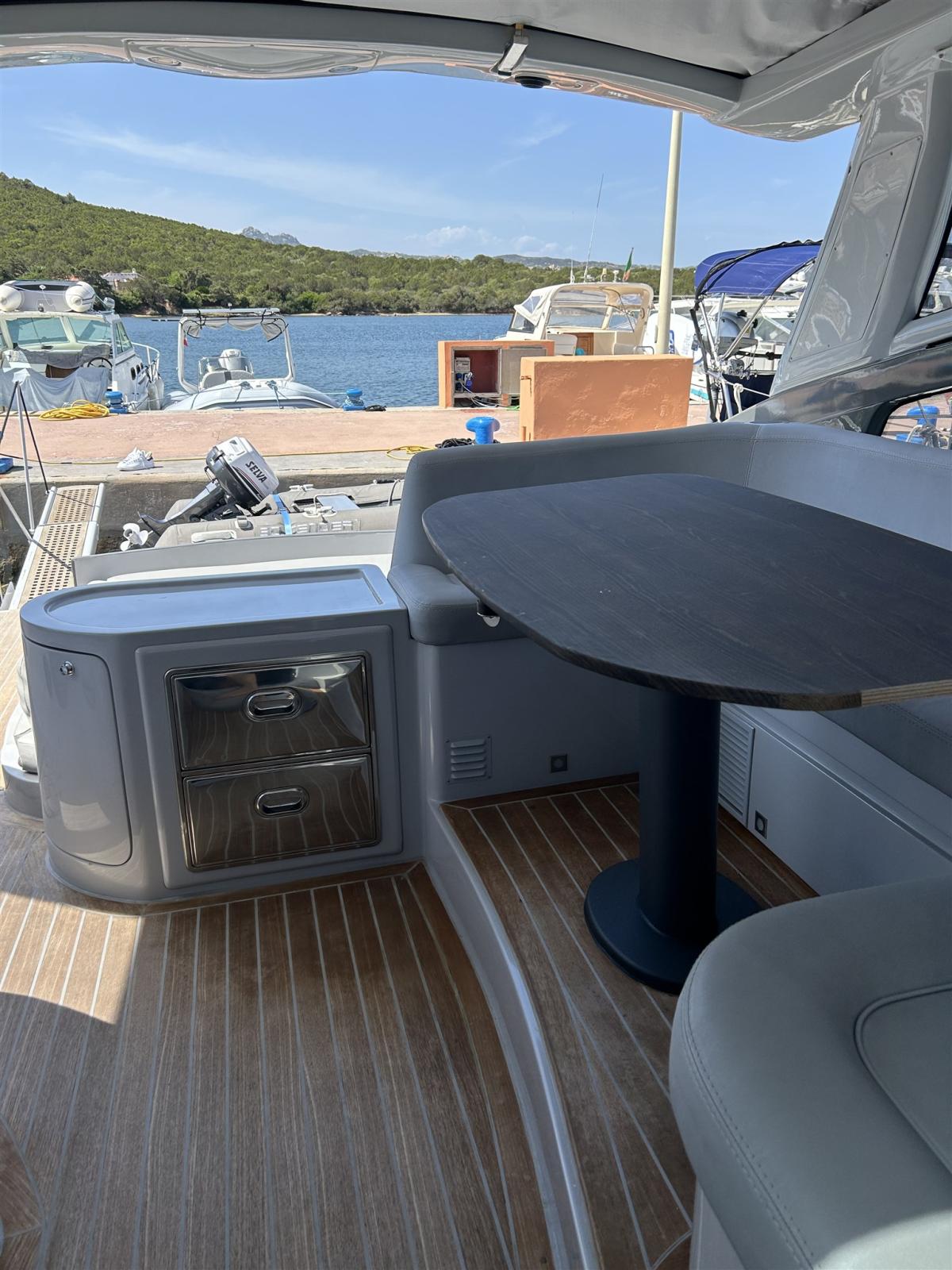 Alarme gaz, Alarme moteur, Alarme de pompe de cale, Ouverture du compartiment moteur électrique (Elettricoidraulico), Auto Dynamic Trim Interceptor, Eau sous pression, Couleur spéciale (Grey), Douche de cockpit, Flaps hydrauliques, Hard top, Extincteur(s) fixe(s), Indicateurs de flaps, Lavabo dans le cockpit, Éclairage de courtoisie, Passerelle (Idraulica a scomparsa), Plateforme arrière, Pompe de cale automatique, Pompe de cale manuelle, Porte latérale, Cockpit en teck, Prise de quai, Onduleur, Guindeau électrique, Echelle de bain, Selles pour Annexe (in plancetta), Système de filtration des eaux usées, table de cockpit, Annexe (3 MT chiglia in alluminio), Corne.
