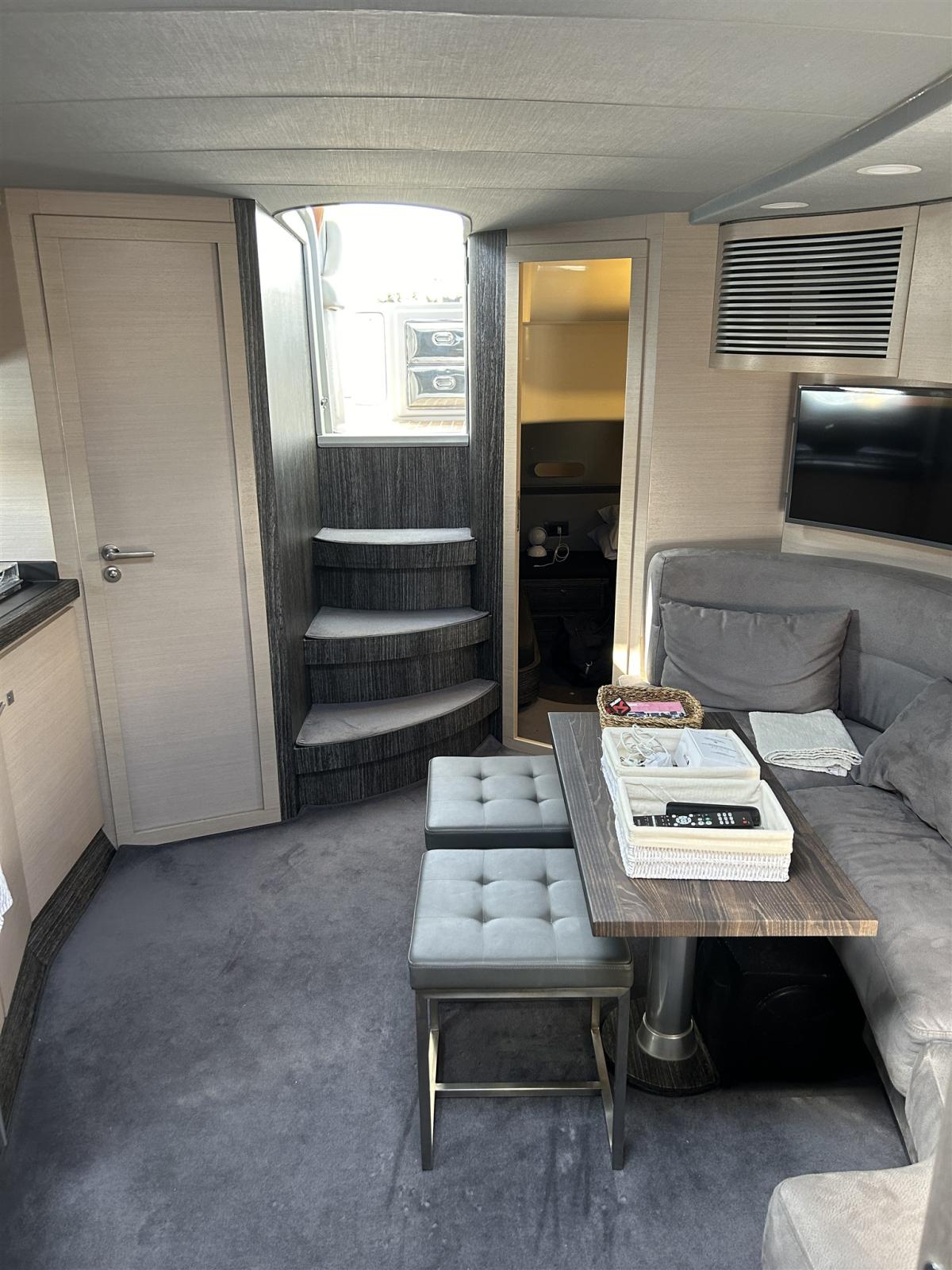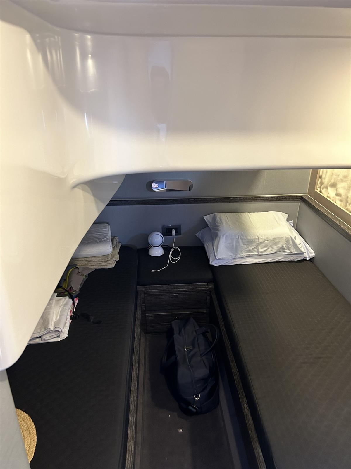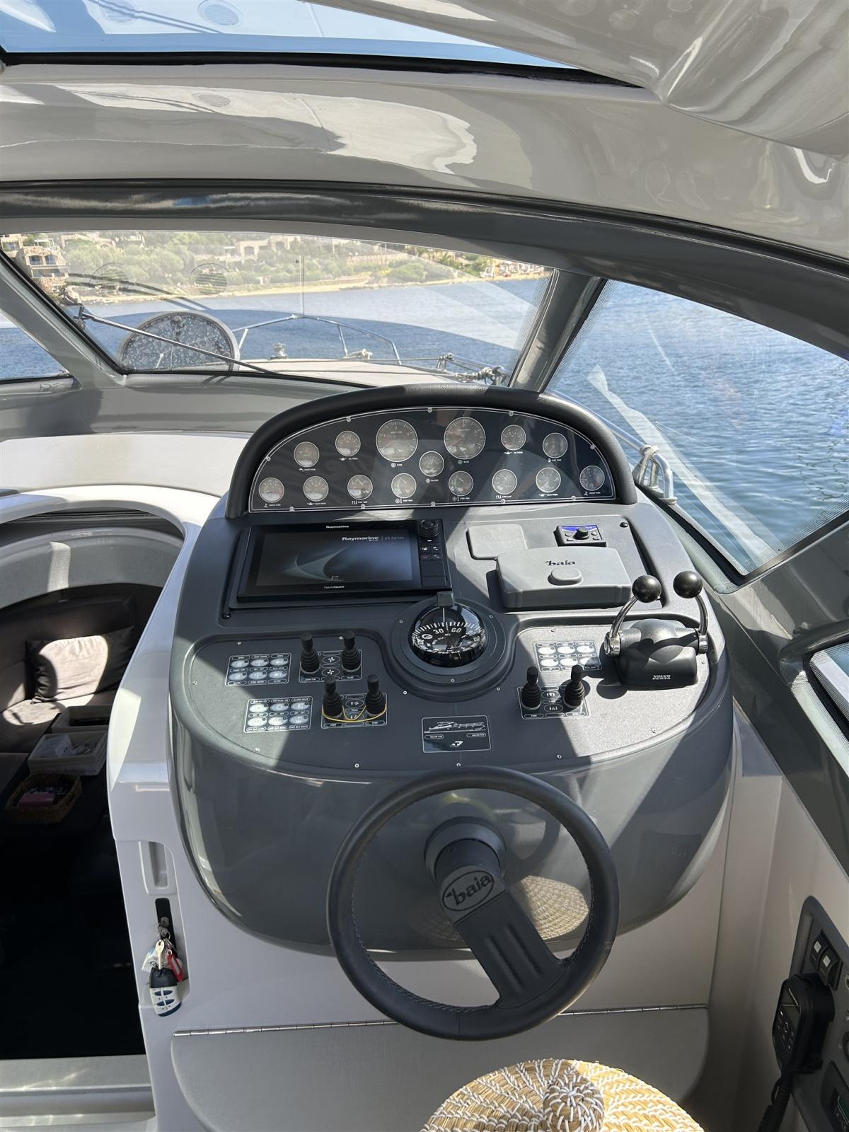 Alarme gaz, Alarme moteur, Alarme de pompe de cale, Ouverture du compartiment moteur électrique (Elettricoidraulico), Auto Dynamic Trim Interceptor, Eau sous pression, Couleur spéciale (Grey), Douche de cockpit, Flaps hydrauliques, Hard top, Extincteur(s) fixe(s), Indicateurs de flaps, Lavabo dans le cockpit, Éclairage de courtoisie, Passerelle (Idraulica a scomparsa), Plateforme arrière, Pompe de cale automatique, Pompe de cale manuelle, Porte latérale, Cockpit en teck, Prise de quai, Onduleur, Guindeau électrique, Echelle de bain, Selles pour Annexe (in plancetta), Système de filtration des eaux usées, table de cockpit, Annexe (3 MT chiglia in alluminio), Corne.