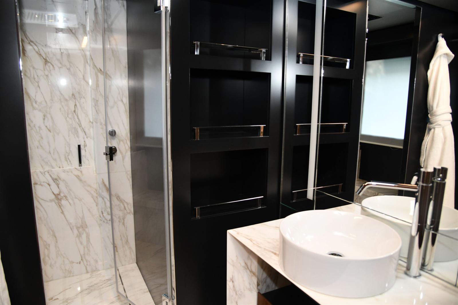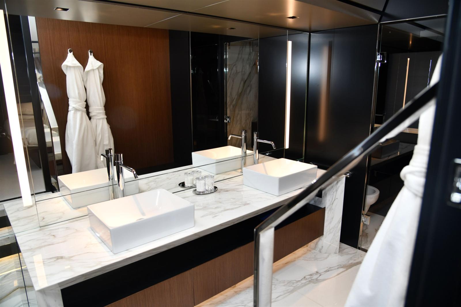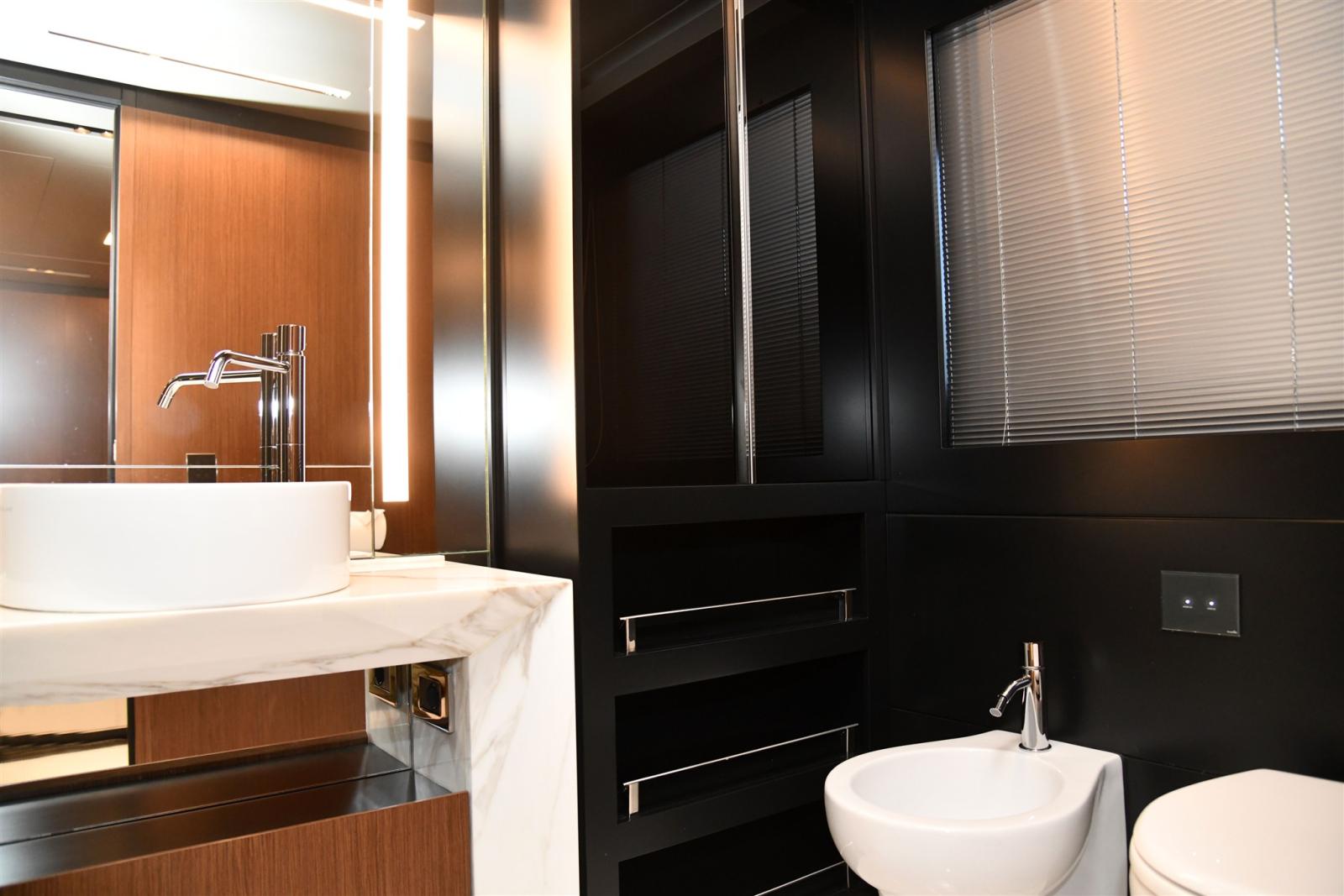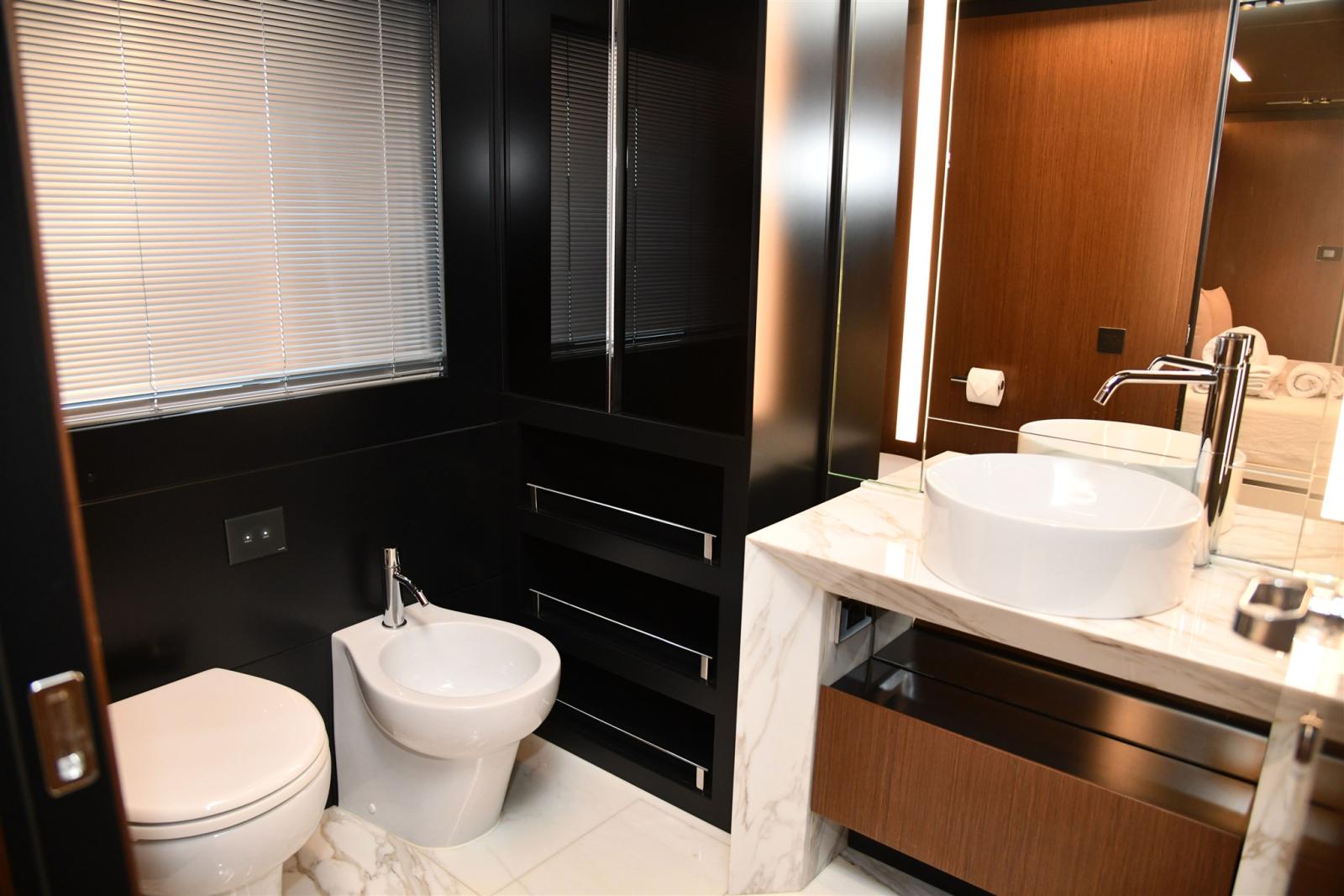 Air conditionné (super tropic 216000BTU), 2 Ballon d'eau chaude, 2 Coffre-fort (UNA NELLA CABINA ARMATORE E UNA NELLA CABINA COMANDANTE), Air Conditionné, Connexion à internet, Contrôleur domotique, Gradateur de lumière, 2 Dessalinisateur (Idromar 180 LT), Cuve à eaux noires (trattamento Hamann), 2 Convertisseur (24 e 230V PER FRIGORIFERI E SERVIZI DI BORDO), Prises interieures 220v, Réservoir d'eau noire, Caméra vidéo, Toilettes électriques.