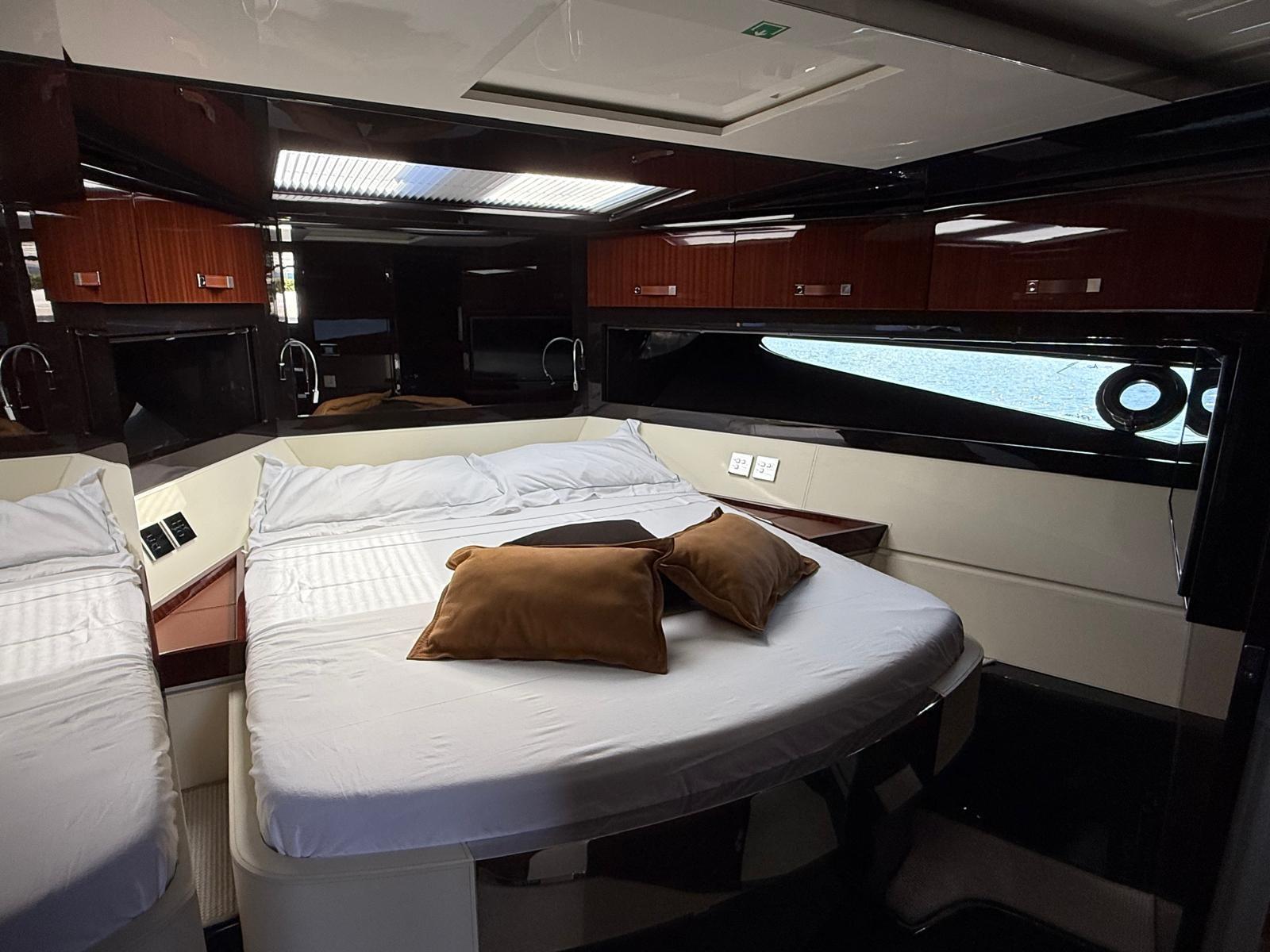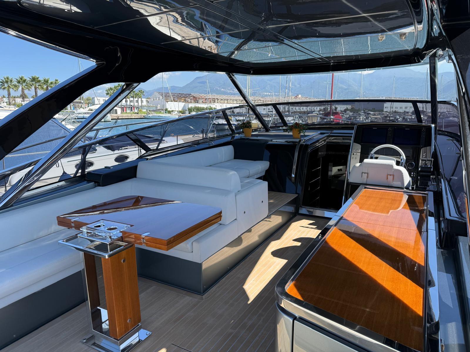 Passavant en teck, Garage à annexe, Hard top, Éclairage de courtoisie, Spots sous-marins, Cockpit en teck, Echelle de bain, Stabilisateurs.