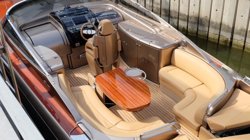 Ouverture du compartiment moteur électrique, Batteries (motori + generatore new 2023), Passavant en teck, Douche de cockpit, Phare de poursuite, Passerelle (hydraulic), Pompe de cale manuelle, Cockpit en teck, Prise de quai, Guindeau électrique, Echelle de bain, table de cockpit, Corne.