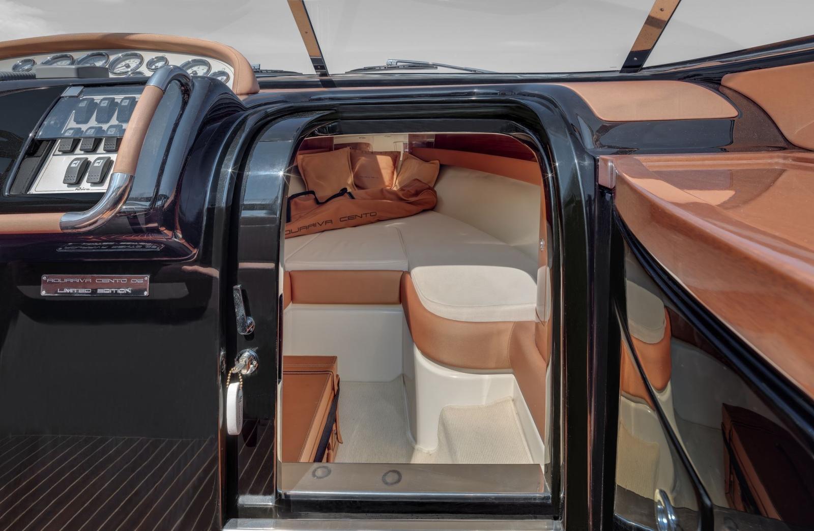Couchette sous le pont à l’avant avec toilette sous les coussins