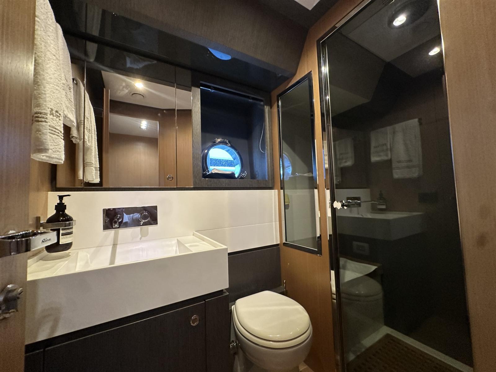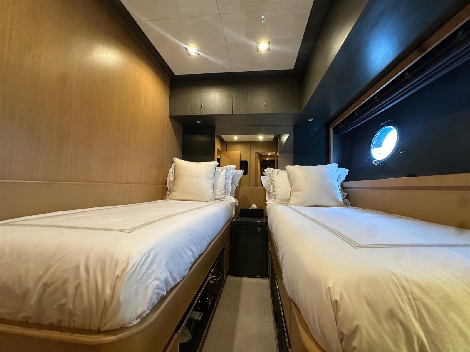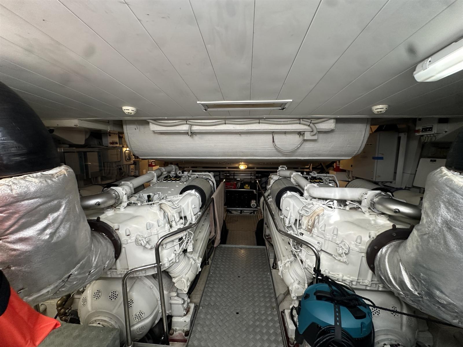 Les moteurs, parfaitement entretenus et en pleine efficacité, permettent au yacht d’atteindre une vitesse maximale de 38 nœuds avec un confort acoustique surprenant.