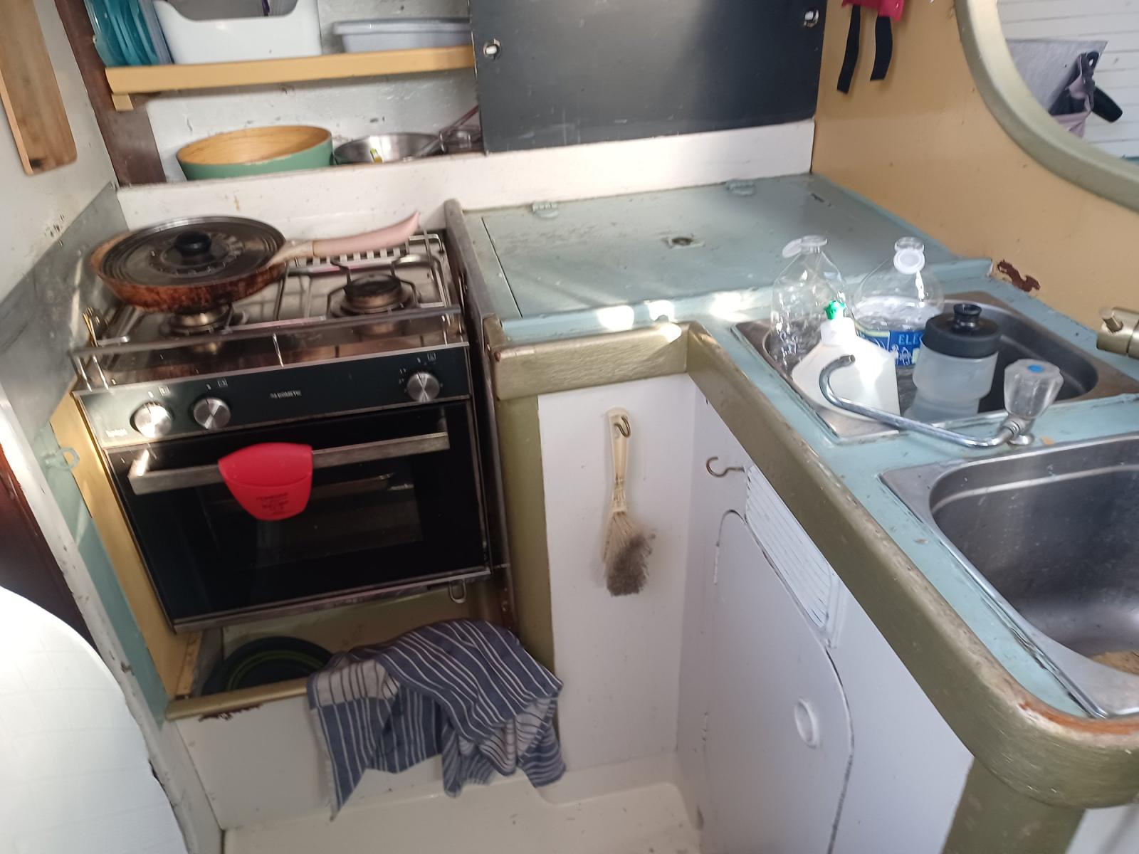 CONFORT : Gazinière DOMÉTIC DE 2022, WC Jabsco (kit joints pompe à remplacer, fourni), réfrigérateur, eau sous pression (groupe d’eau de 2022), pompe eau de mer