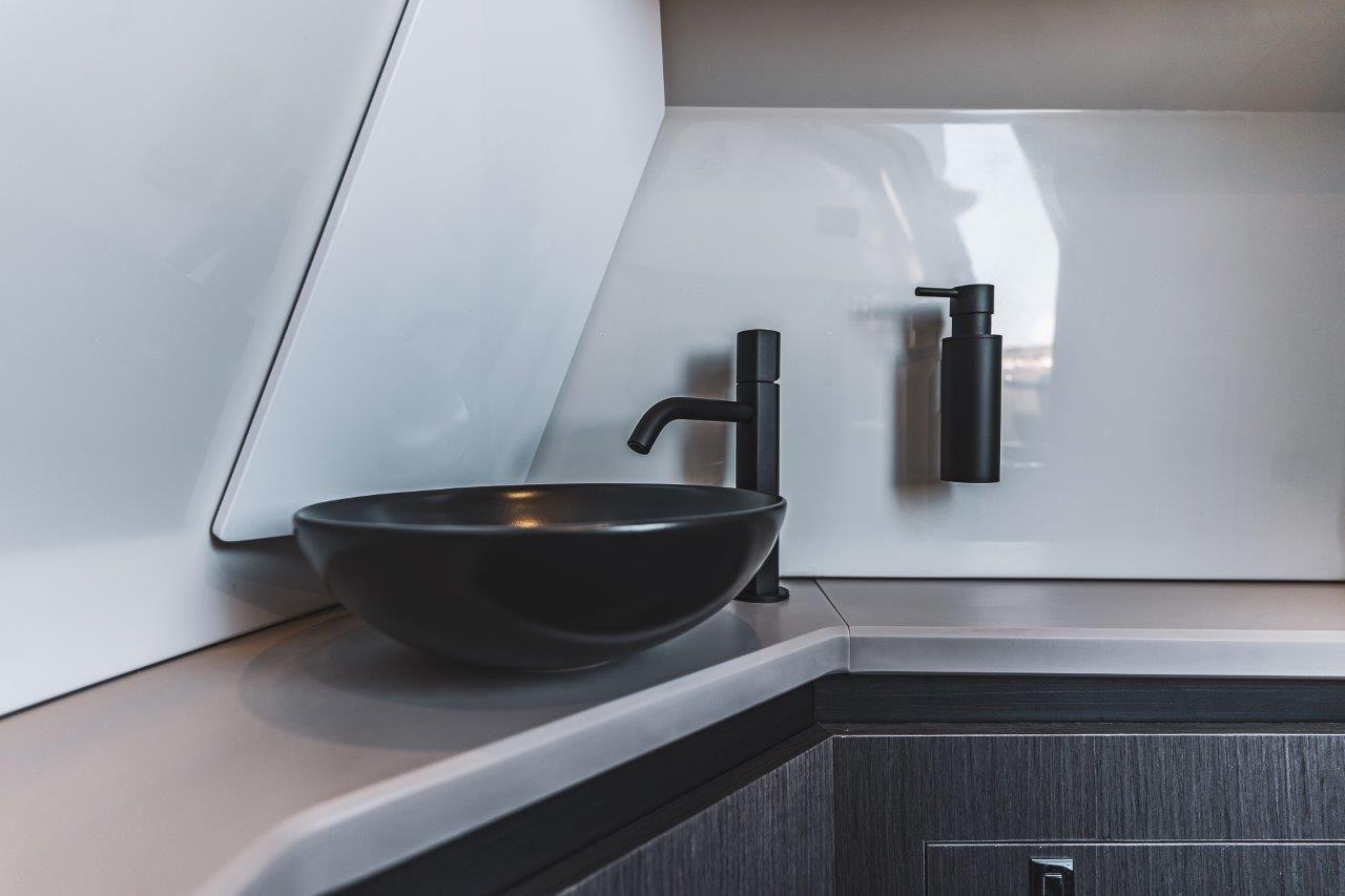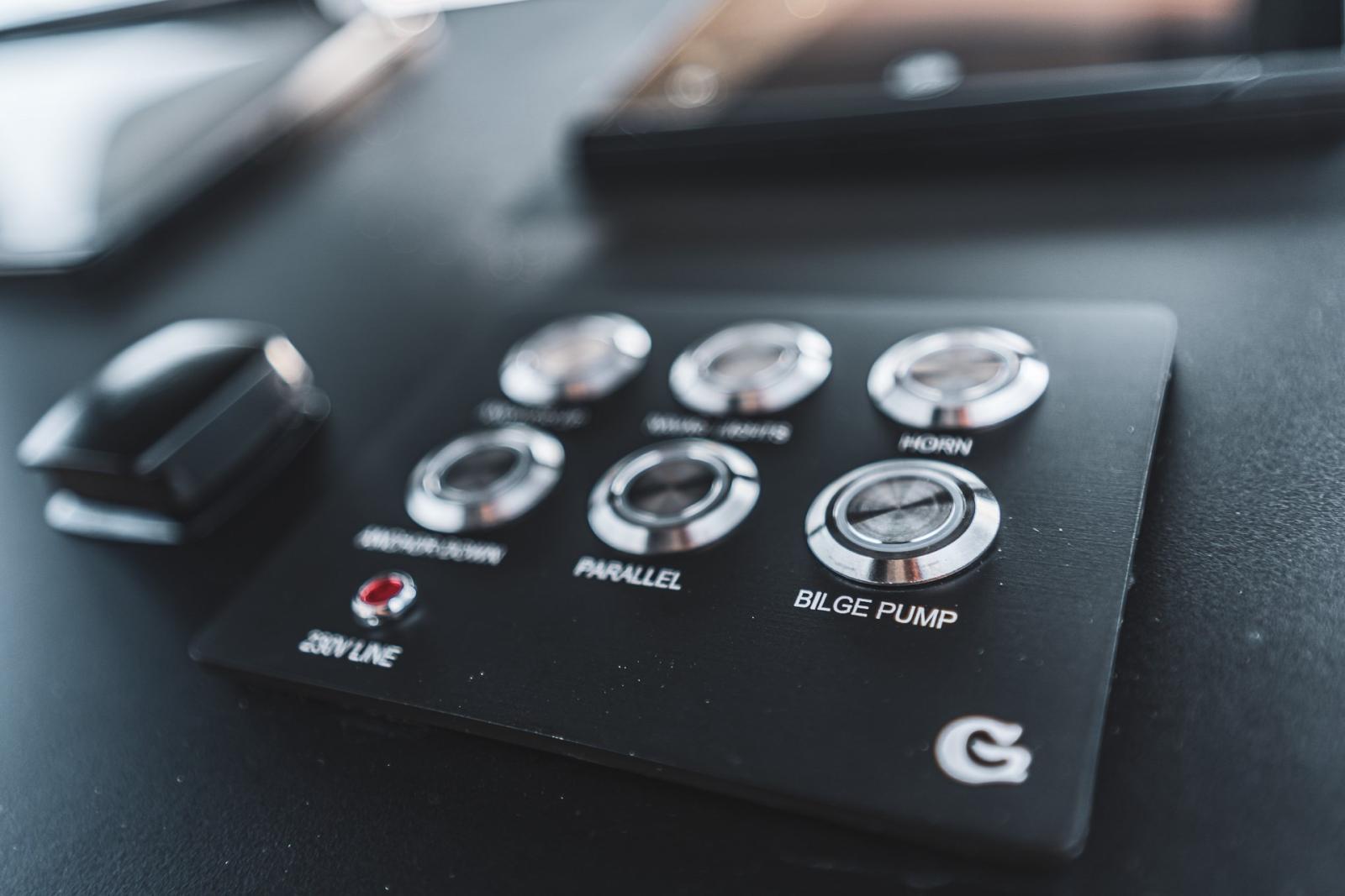 Alarme moteur, Alarme de pompe de cale, Alternateur, Ancre (Acciaio Inox 10Kg), Eau sous pression, Câble d’alimentation à quai, Douche de cockpit, Lavabo dans le cockpit, Éclairage de courtoisie, Spots sous-marins, Moniteur de batterie, Pompe de cale automatique, Guindeau électrique, Echelle de bain, table de cockpit, Corne.