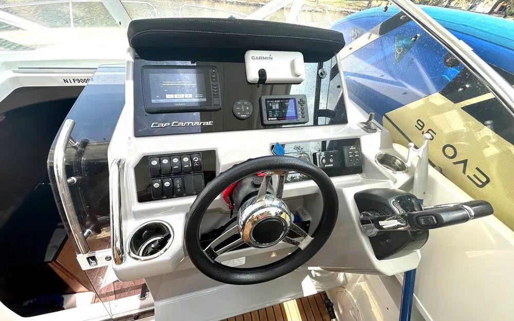Le Cap Camarat 9.0 WA est également reconnu pour sa carène fiable et sécurisante, offrant un comportement marin exemplaire. Avec ses réservoirs de 400 L de carburant et 100 L d’eau, il permet des navigations confortables sur de longues distances.