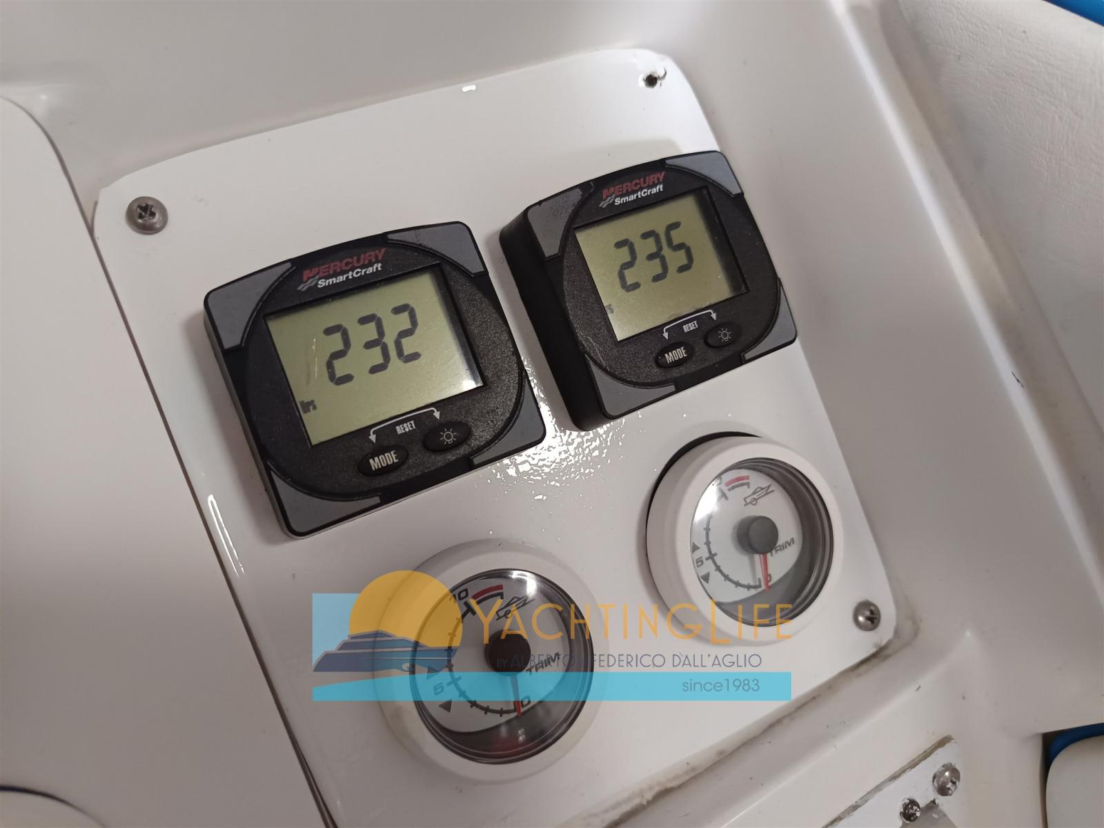 Alarme moteur, Eau sous pression, Douche de cockpit, Flaps hydrauliques, Extincteur(s) fixe(s), Indicateurs de flaps (Smartcraft + analogici nuovi), Plateforme arrière (Riverniciata), Porte latérale, Prise de quai, Corne.