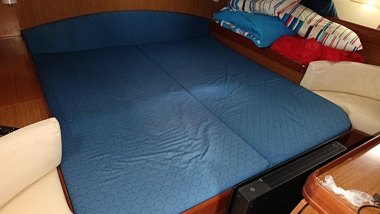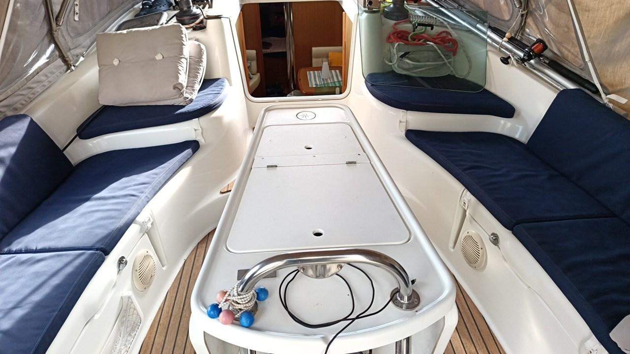 Alarme moteur, Alarme de pompe de cale, Alternateur, Eau sous pression, 4 Batteries (2025), Douche de cockpit, Extincteur(s) fixe(s), Éclairage de courtoisie, Passerelle, Pompe de cale automatique, Cockpit en teck, Prise de quai, Connexion eau sous pression à quai, Guindeau électrique, Gréement monotoron, Echelle de bain, Table pliante de salon.