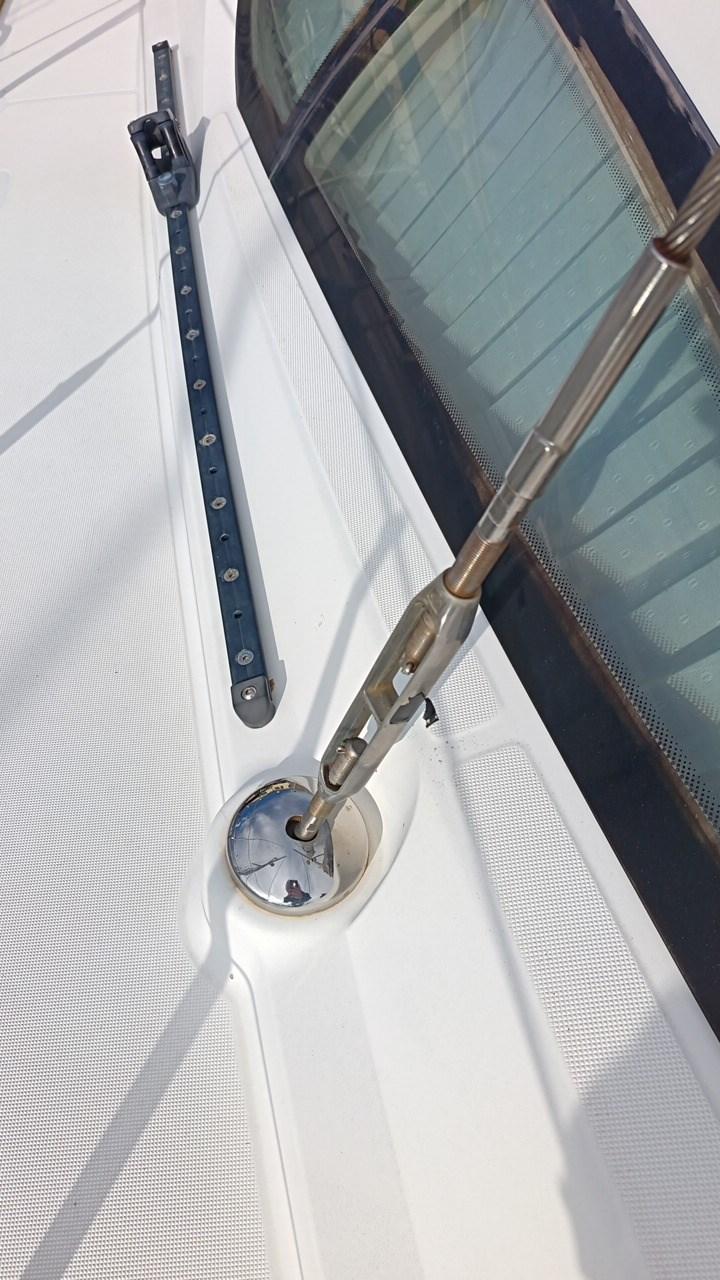 Indicateur d'angle de barre, Ordinateur fixe de bord, Compteur de chaîne, Moniteur, GPS (Raymarine C80), Panneau de commande.