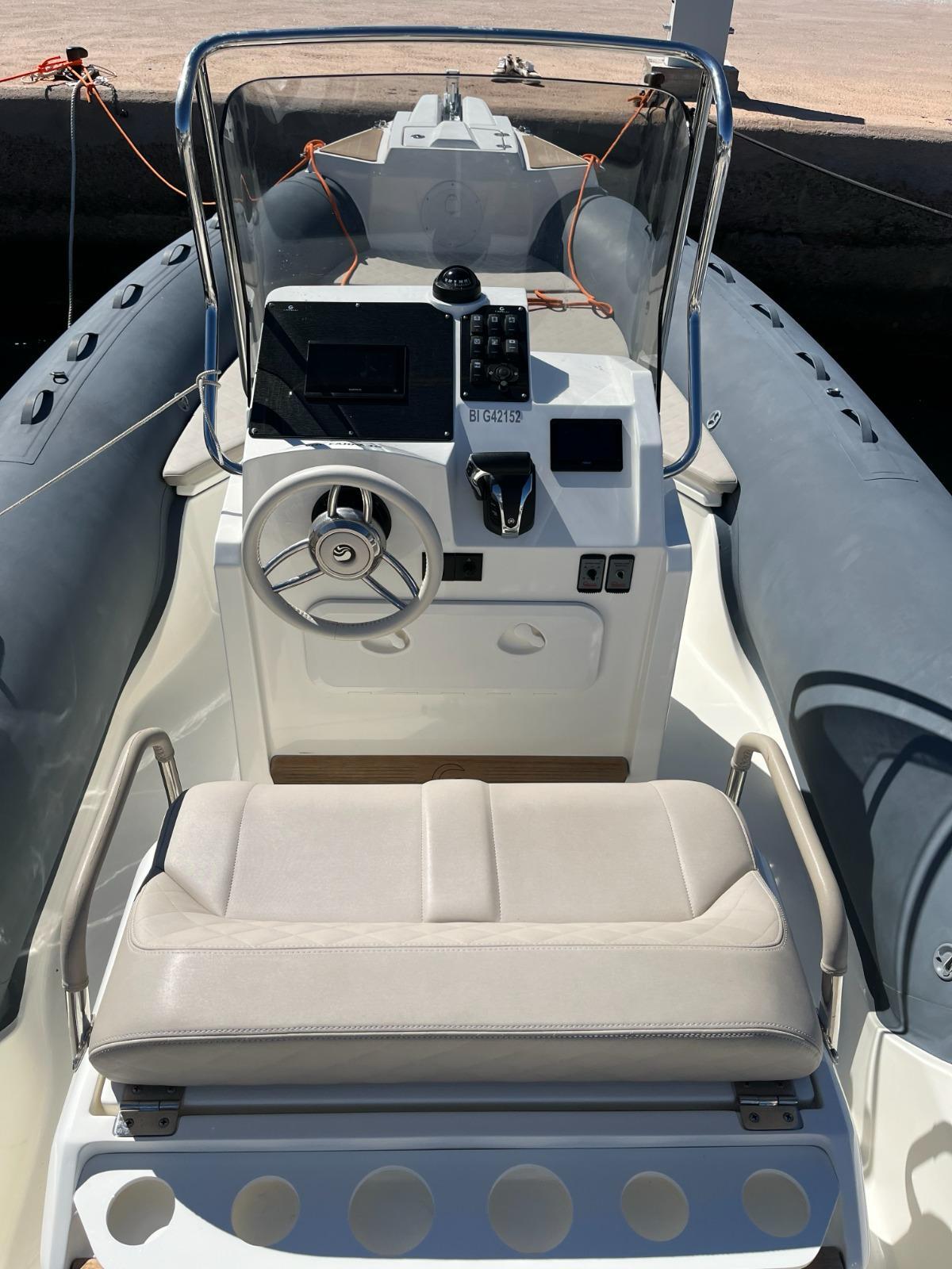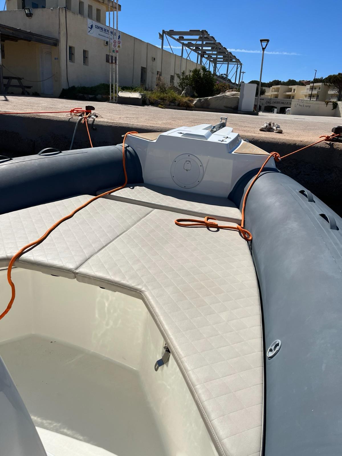 Conçu en 2022, ce semi-rigide allie élégance, robustesse et confort. Son design moderne et ses finitions haut de gamme en font un véritable joyau sur l'eau, attirant tous les regards admiratifs.