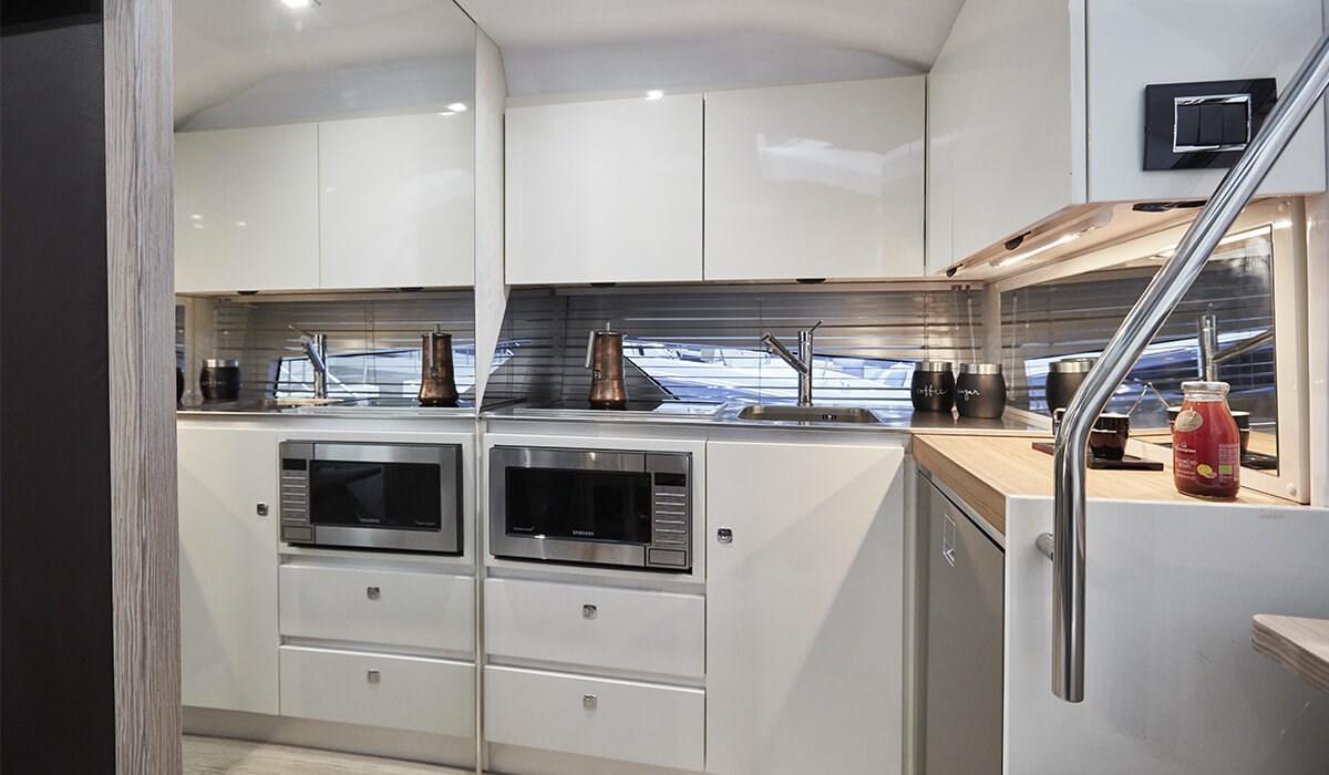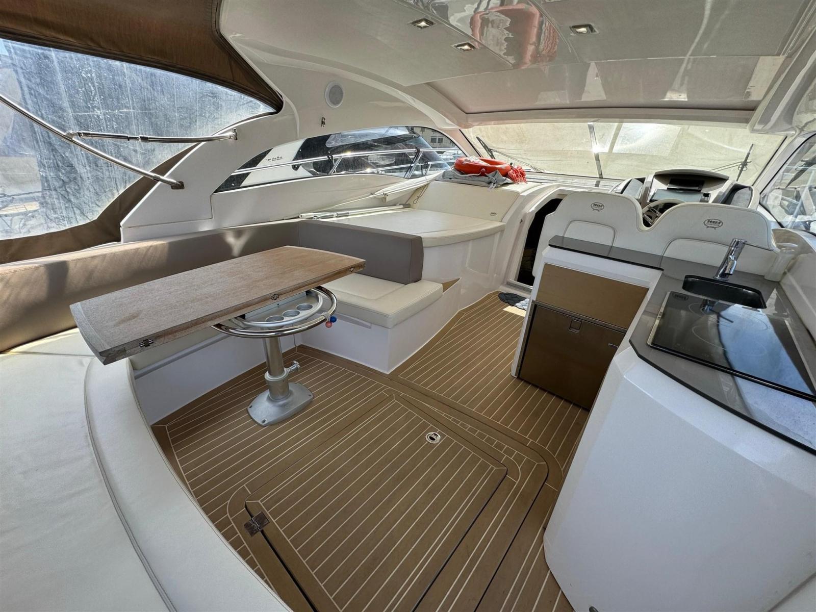 Alarme de pompe de cale, Eau sous pression, Trim hydraulique, Douche de cockpit, Flaps électriques, Lavage de chaine, Lavabo dans le cockpit, Éclairage de courtoisie, Cockpit en teck, Prise de quai, Connexion eau sous pression à quai, Guindeau électrique, table de cockpit, Winch électrique avant.