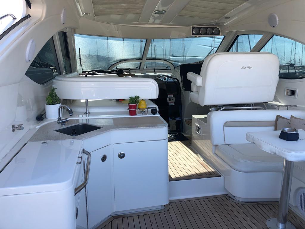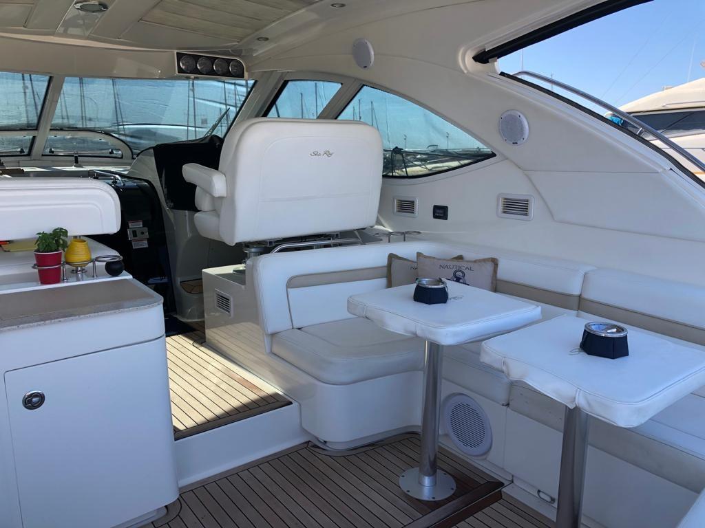 -Table en teck brillant dans le cockpit