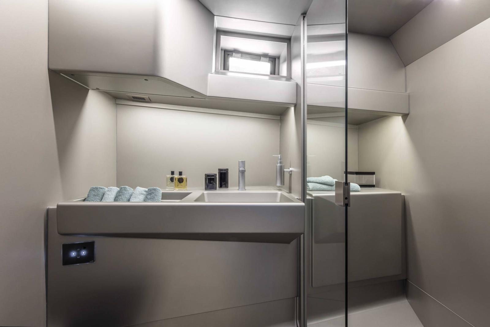 Douche confortable à l’arrière avec finition carbone (amovible)