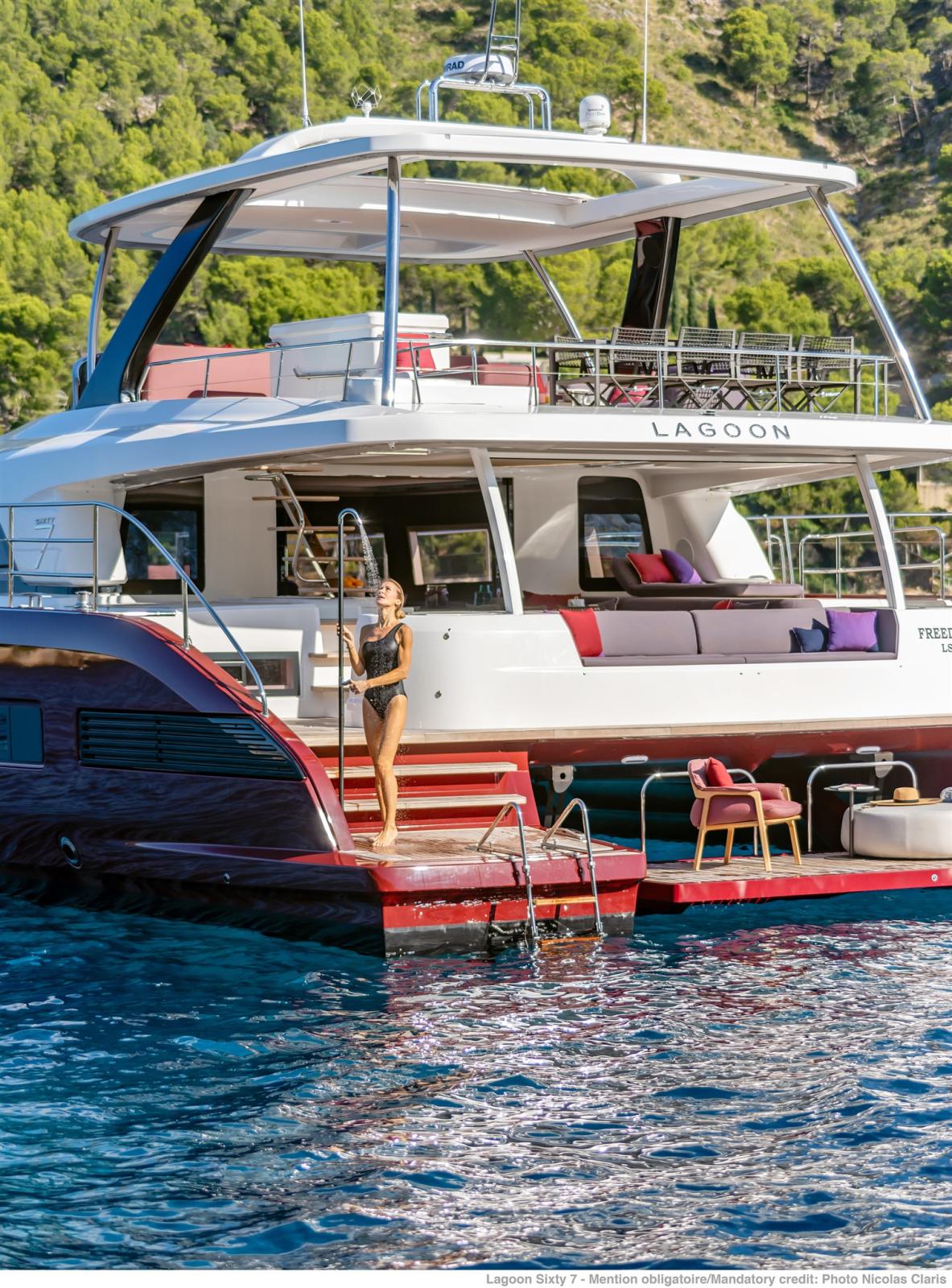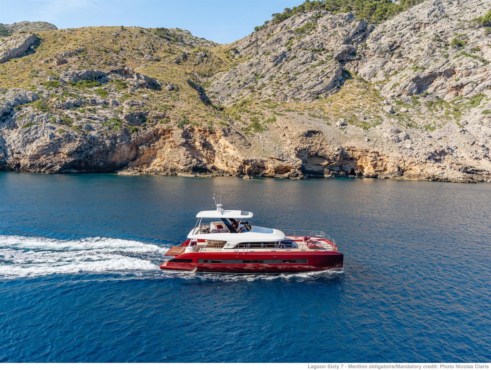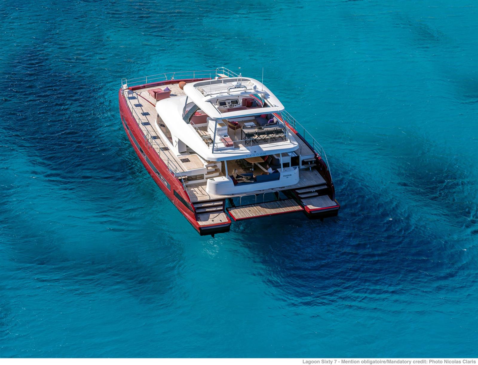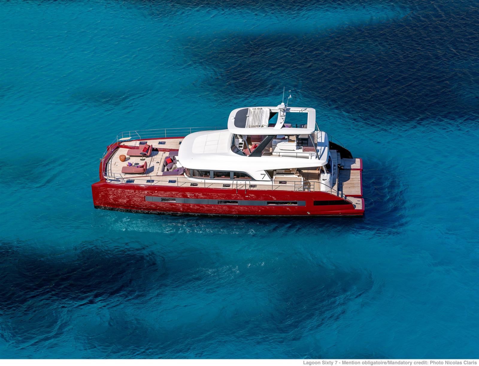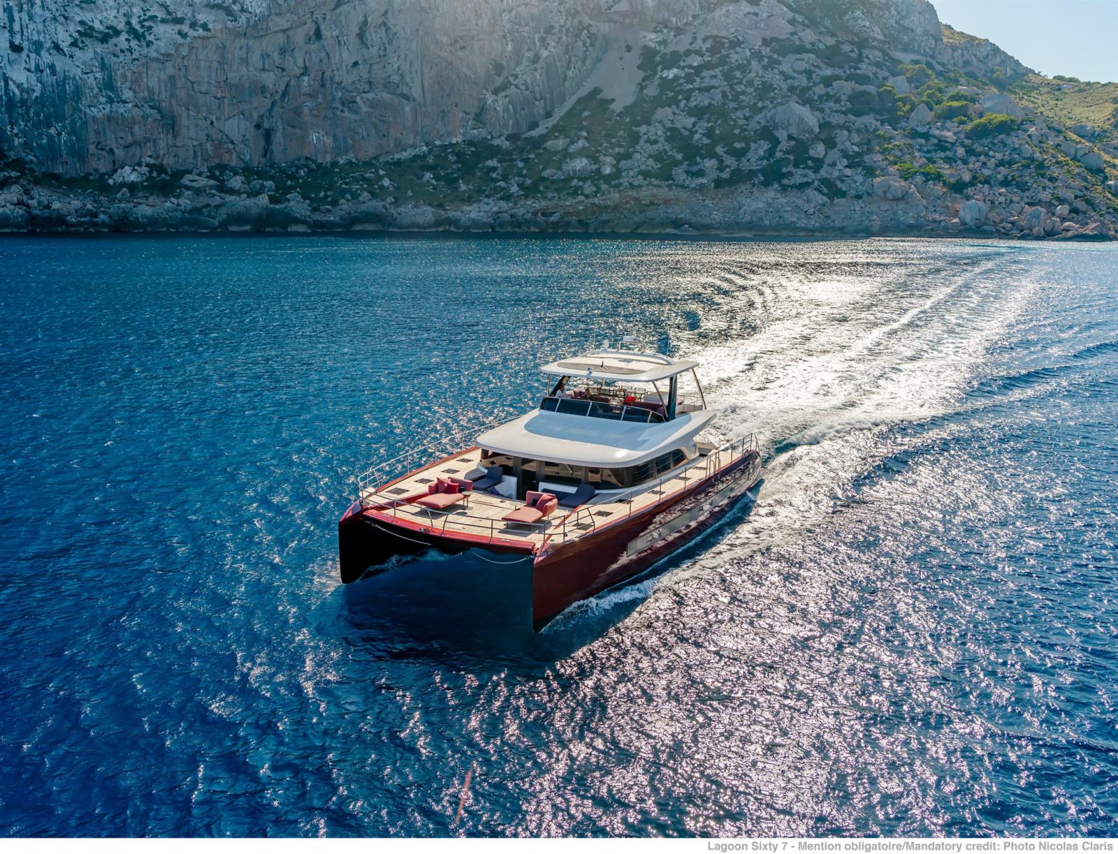 Dans la lignée du Lagoon Seventy8, Lagoon lance un nouveau catamaran à moto, le Sixty7.