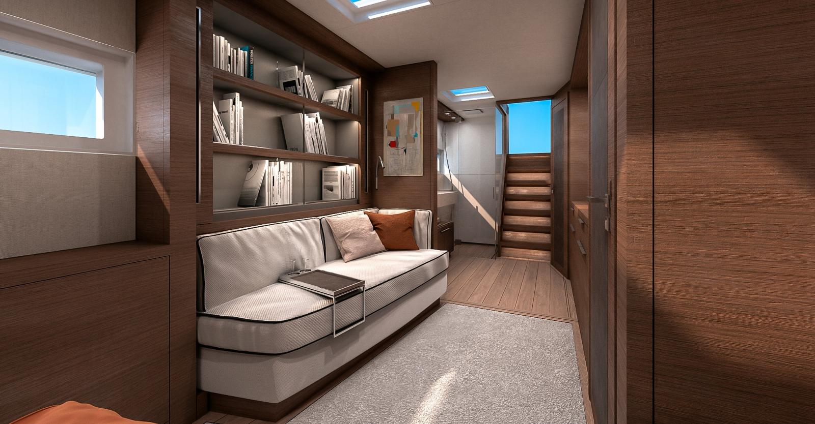 La belle berline presque carrée est unique dans le segment des yachts à moteur et donne une atmosphère chaleureuse. La cabine du propriétaire est spacieuse et luxueuse avec une entrée spacieuse sanitaire et privée depuis l'extérieur à l'arrière. Le Sixty7 est disponible en version 4, 5 ou 6 cabines et avec une cuisine dans le carré ou une cuisine latérale dans la coque avec accès direct de l'extérieur.