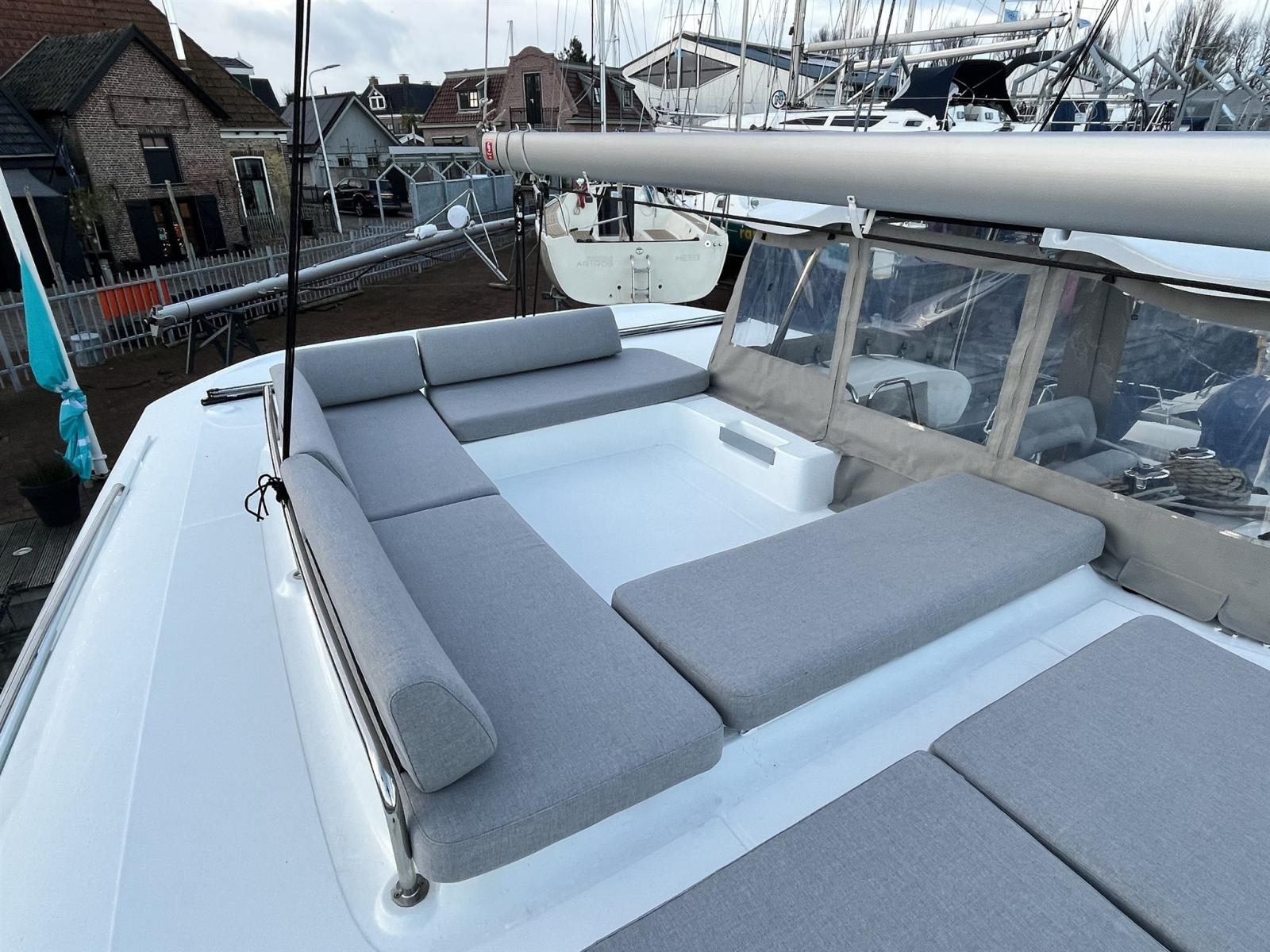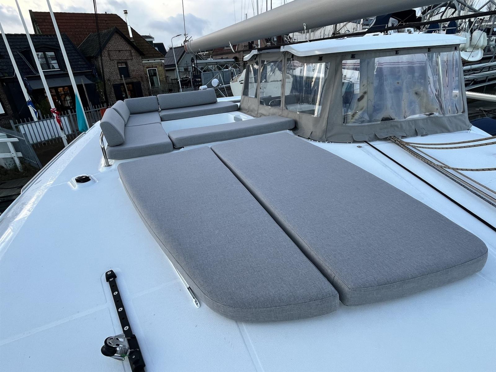 Taud de cockpit, Sellerie complète, Coussin avant (Sundeck), Sellerie de fly, sellerie de cockpit, Supplément bain de soleil (Met kussens), Taud de console, Taud de siège.