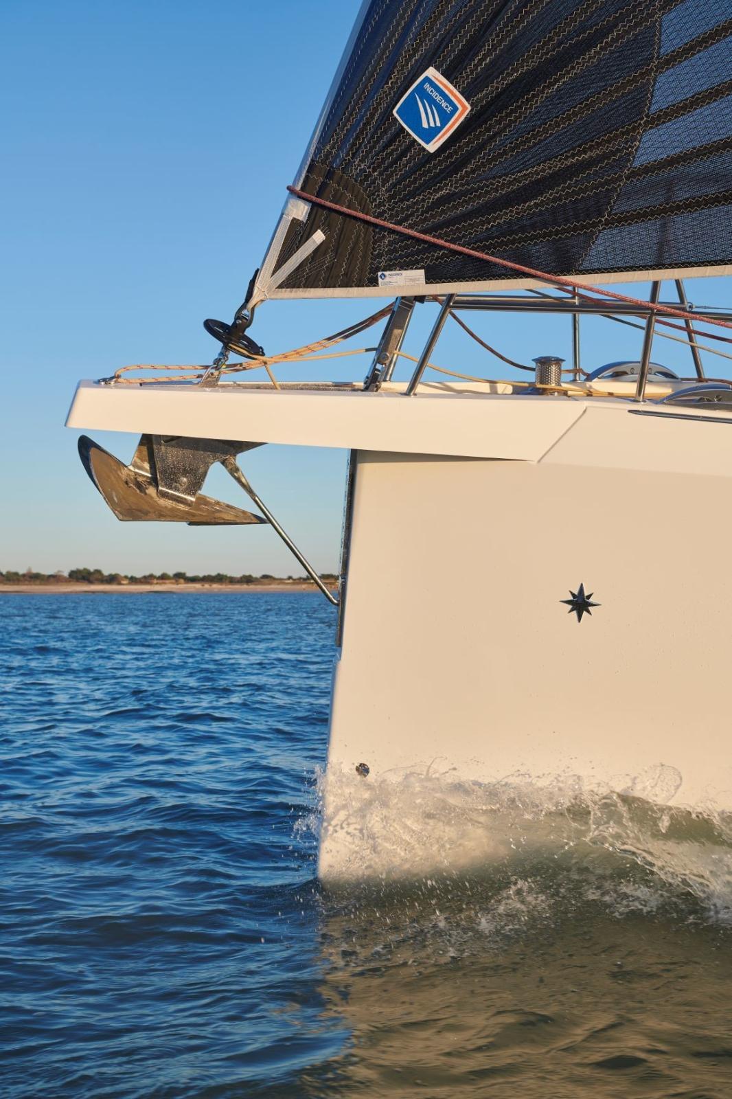 Alternateur, remorque, Éolienne, Bossoirs, Bossoirs pour annexe, Panneau solaire, Plateforme arrière, Pompe de cale manuelle, Pont en teck, Prise de quai, Echelle de bain, Stabilisateurs, table de cockpit, Annexe, Winch hydraulique.
