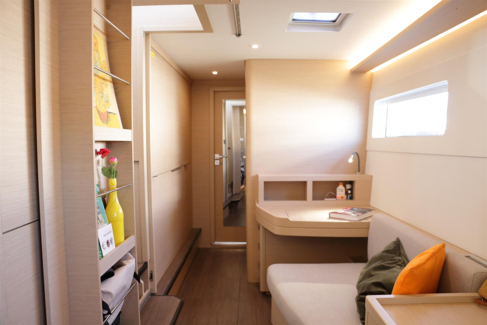La cabine spacieuse du propriétaire couvre une coque complète. Espace, luxe et confort.