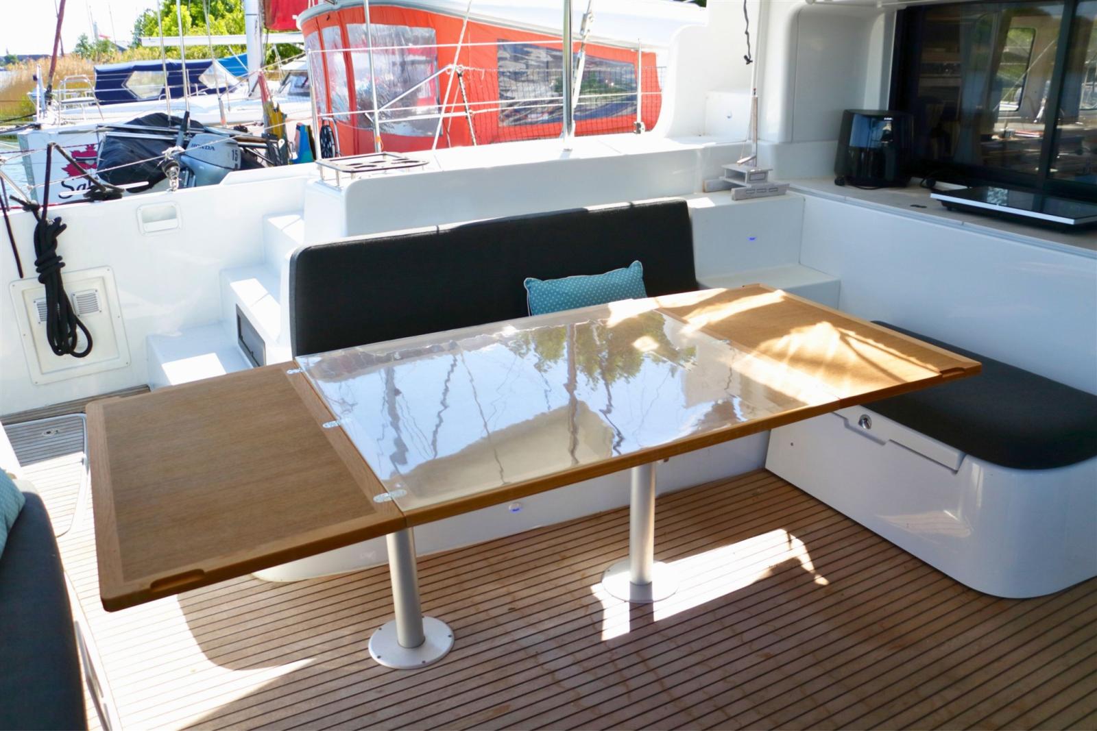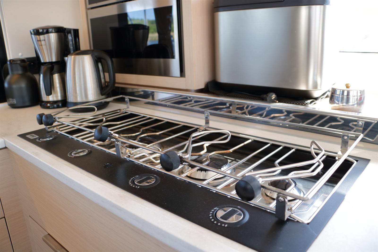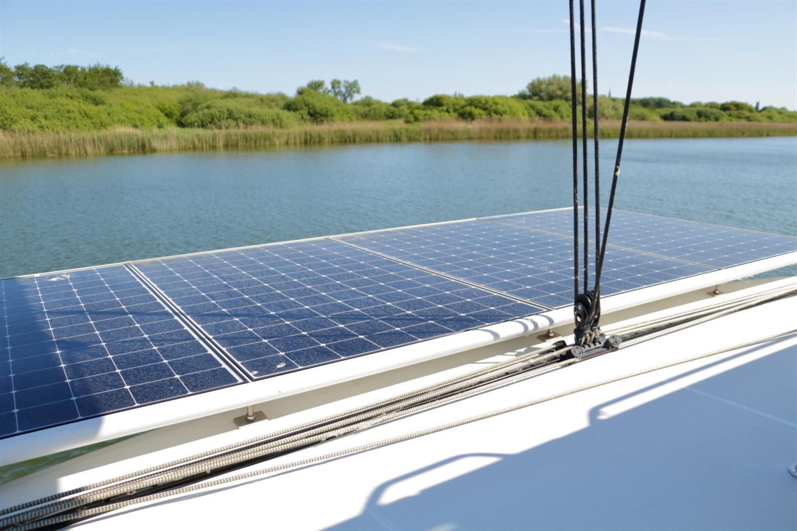 Équipé de précieuses améliorations. Ce catamaran est totalement autonome et entièrement équipé pour vivre et naviguer confortablement. La configuration de l’alimentation électrique à bord est unique et offre le même confort qu’à la maison avec des batteries lithium de 22 kWh et 8 panneaux solaires. Tout le matériel, y compris la climatisation, la machine à eau et la machine à laver/sèche-linge, fonctionne sur les batteries au lieu du générateur. Ainsi, vous n’aurez aucun bruit gênant provenant du générateur.