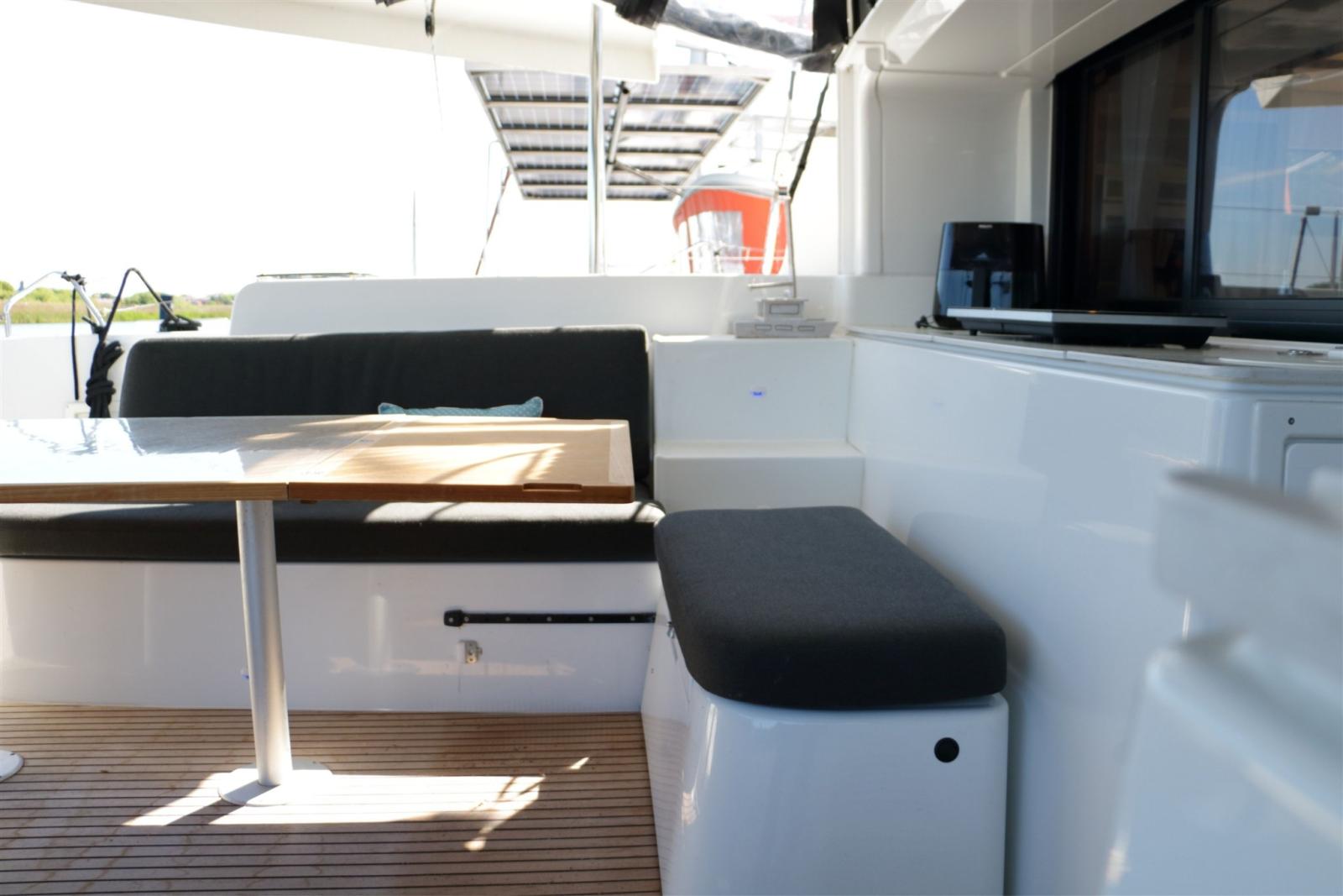 Eau sous pression, 3 Batteries (extra service accu's (140Amp) + accumonitor), Chargeur de batterie (60Amp), Douche de cockpit (Dekwaspomp (zeewater & zoetwater)), Bossoirs (Tenderlift platform met klapvleugels (max.250KG) - RVS davitssysteem + handlier), Lavabo dans le cockpit, Éclairage de courtoisie (Indirecte verlichting in hutten en salon), Spots sous-marins (4x aan de achterzijde), 8 Panneau solaire (400Wp op de bimini & boog achterop), Pompe de cale automatique, Cockpit en teck (+ zwemplateau's), Prise de quai, Connexion eau sous pression à quai, Guindeau électrique (met ketttingteller), Echelle de coupée, Echelle de bain, table de cockpit (Grote opklapbare teaktafel met hoes), Table pliante de salon, Filières avec sortie latèrale, Windex.