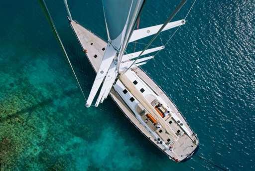 Le pont, peint dans un Town Grey raffiné, présente de fines finitions en titane et une finition en teck qui allie fonctionnalité et style intemporel. Les points forts comprennent une plate-forme de bain à l’arrière, un grand garage à annexe et une série de treuils hydrauliques pour une gestion facile des voiles.
