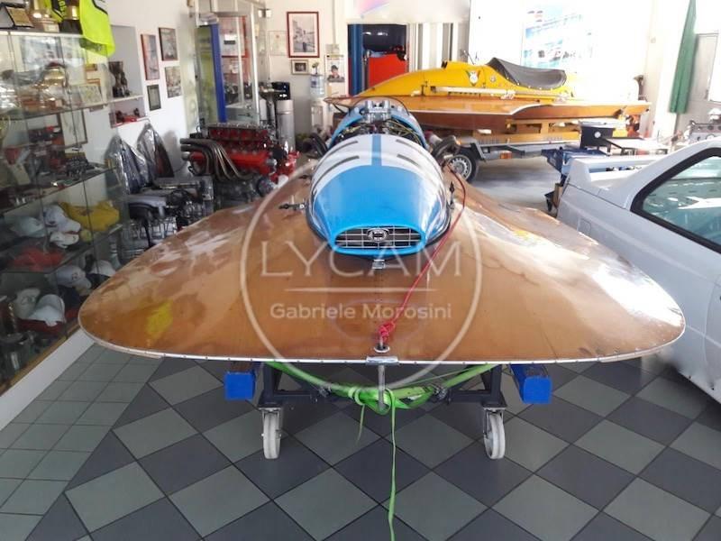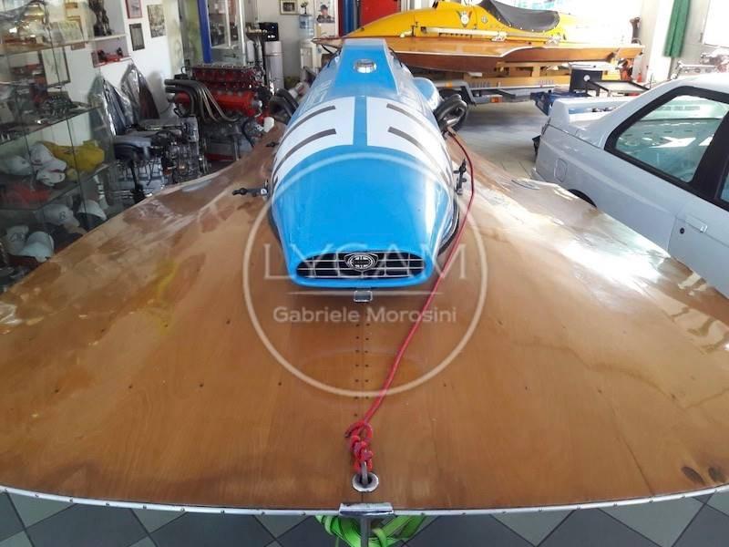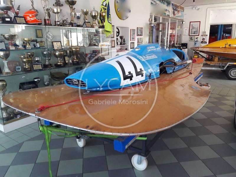 Molinari fut l’un des constructeurs italiens les plus importants de courses à 3 points, victorieux de centaines de compétitions internationales de bateaux à moteur. Cette Racer est en bon état, restaurée, très rare et équipée d’un moteur Lancia Flaminia 6 cylindres d’origine de 2 500 cm³.