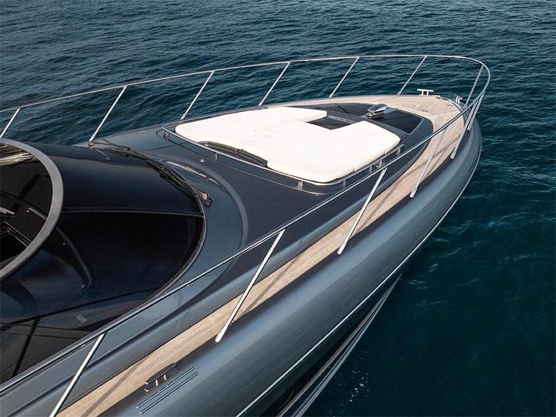 Grâce à la plateforme installée sur la poupe qui cache le garage pour le tender, on peut accéder au pont caractérisé par un pont arrière, une zone repas avec un canapé en forme de L sur bâbord, tandis que de l’autre côté se trouve un bar/placard de cuisine pour les repas en extérieur.