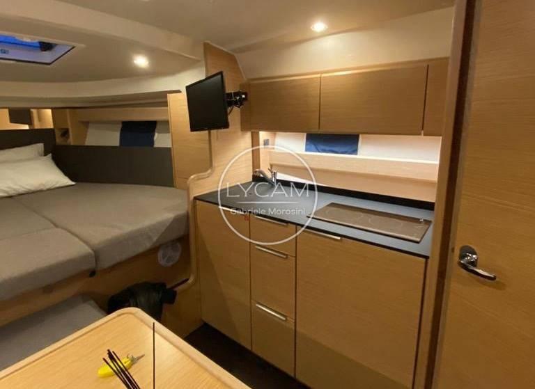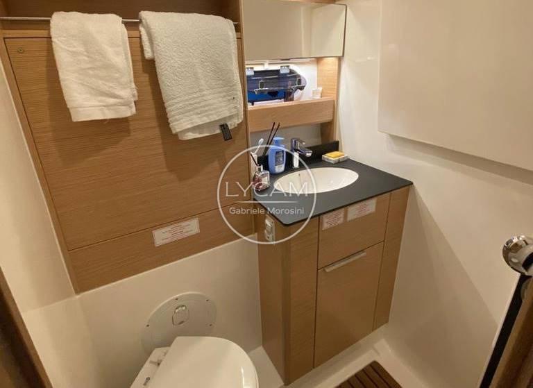 Climatisation / Chauffage - Chaudière - Autoclave - Pompes de cale - Passerelle hydraulique - Échelle de bain - Chaîne stéréo - TV - Coussins et pont solaire à la proue - Plateforme en teck à la poupe - Douche dans le cockpit - Équipement de sécurité - Treuil électrique - Lumières sous-marines - Évier avec robinet mélangeur - Frigo - Micro-ondes - Toit rigide à ouvrir.