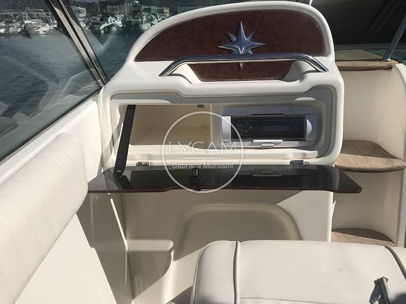 Feux de navigation ; Feu d’ancre ; Échelle de nage ; Douche dans le cockpit ; Crochet de ski nautique ; Piles; Déconnexion de batterie ; Chargeur; Pompe de cale électrique ; Couverture de bateau ; Rétroviseur intérieur ; Auvent de cockpit ; coussins de terrasse et cockpit ; Mât; cockpit en teck ; Table de cockpit.