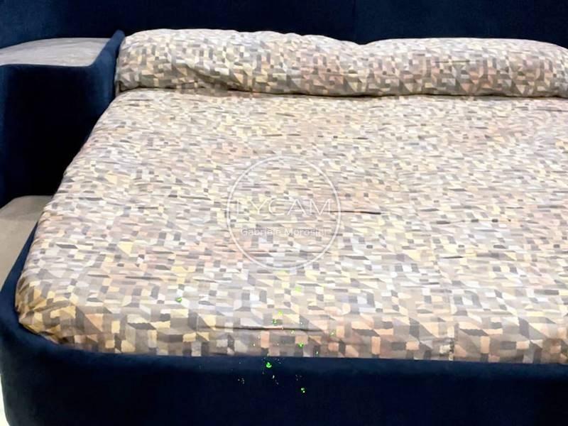 Pont : cockpit avec canapé en forme de U et table à manger électrique pouvant être transformée en terrasse d’exposition ; bar humide avec réfrigérateur et évier ; siège pilote et passager ; Pont Soleil Proue