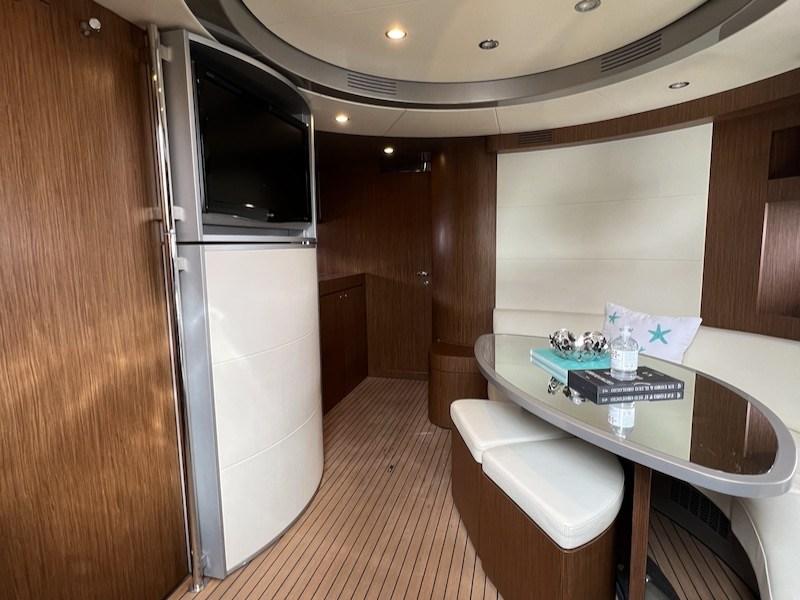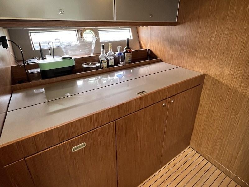 Pont : Pont ouvrier à la proue et à la poupe avec de nouveaux coussins ; cockpit en teck avec canapés et table à manger ; Armoire bar avec réfrigérateur-plaque-machine à glace ; siège pilote et passager ; Capot électrique. Sous le pont : cabine du propriétaire à l’avant avec salle de bain attenante ; 2 cabines d’amis avec lits plats et 1 salle de bain ; Grande salle à manger avec canapé et table à manger ; Cuisine complète avec une plaque en céramique à quatre brûleurs, un évier, un lave-vaisselle, un réfrigérateur, un congélateur, un micro-ondes.