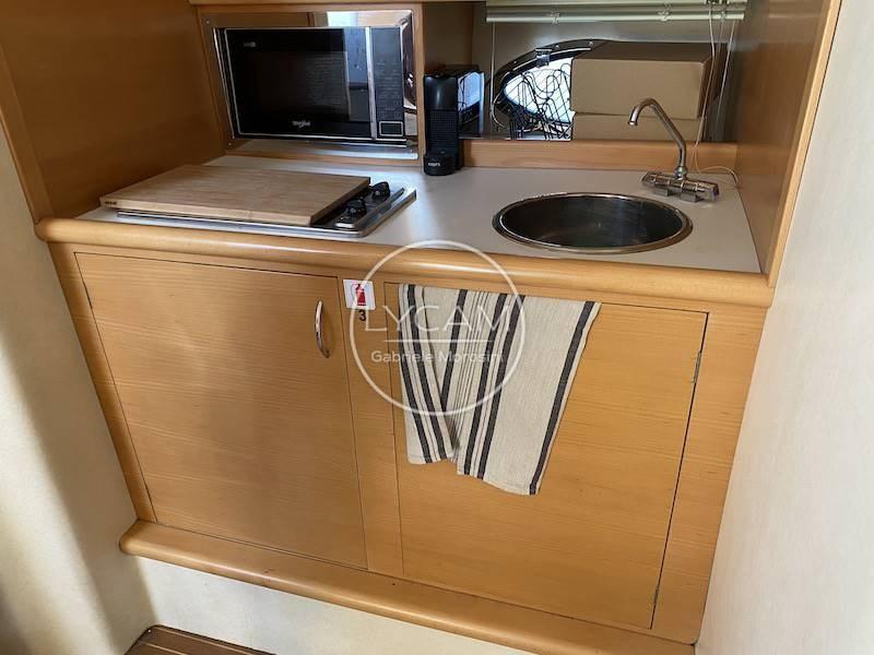 Sous le pont, du côté tribord, se trouve la cuisine, tandis que de l’autre côté se trouve la salle à manger. La cabine du propriétaire avec sa salle de bain est située vers la poupe, tandis qu’à l’avant se trouve la cabine VIP avec la salle de toilette attenante