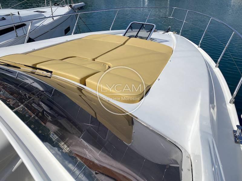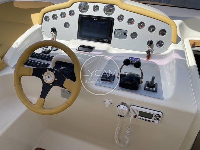 La plateforme arrière mène au cockpit, caractérisé par un grand pont ouvrier sur le côté bâbord et, ensuite, une salle à manger avec une table en forme de C. De l’autre côté se trouve le meuble bar, et vers la proue, la passerelle avec les sièges pour le pilote et le copilote.