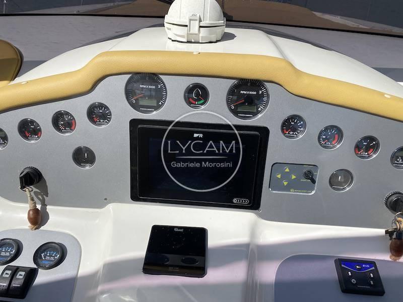 Instrumentation de contrôle moteur ; Boussole; Odomètre; Indicateur d’angle de gouvernail ; GPS; Sonar; VHF; Radio/Stéréo ; Propulseur d’arc ; Leviers de gaz moteur