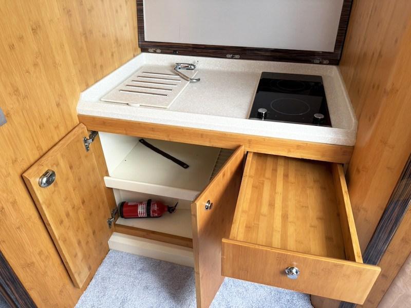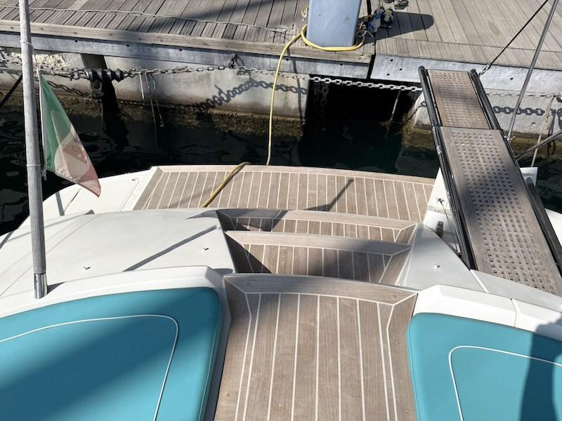 Alarme moteur, Alarme de pompe de cale, Ouverture du compartiment moteur électrique, Eau sous pression, Câble d’alimentation à quai, Douche de cockpit, Lavabo dans le cockpit, Défenses, Passerelle (idraulica), Pompe de cale automatique, Pompe de cale manuelle, Cockpit en teck, Prise de quai, Guindeau électrique, Echelle de bain, table de cockpit, Annexe, Corne.