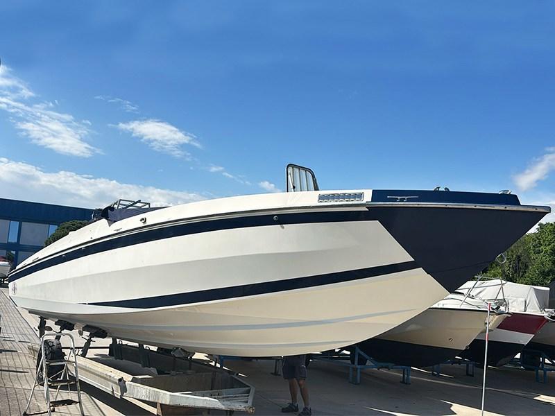 Le bateau en question est équipé de moteurs Mercruiser de 305 ch datant de 2007 et est en bon état général.