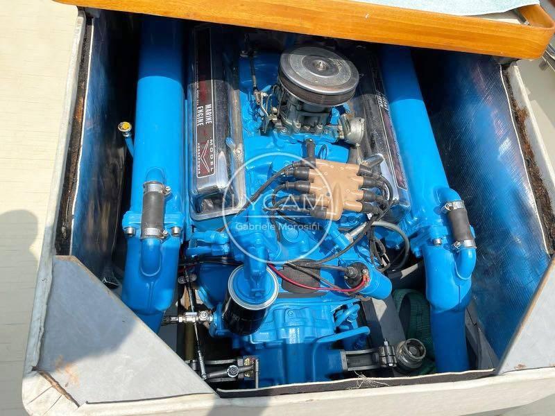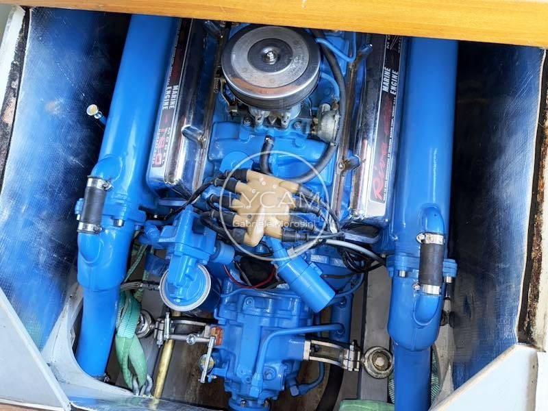 La disposition du pont comprend un grand cockpit unique sur lequel on peut facilement marcher debout, protégé par les remparts et des rampes en acajou raffinées fixées sur des supports et extrémités en bronze chromé. Le capot moteur se trouve au centre du cockpit et sert de base pour accueillir un matelas relié aux sièges arrière, devenant ainsi une grande zone de bronzage unique. Devant le compartiment moteur, en plus d’une étagère en bois pratique, se trouvent les sièges pilote et copilote qui servent la timonerie caractéristique d’inspiration automobile, protégée par un pare-brise enveloppant sur profil chromé. Élégantes et distinctives du chantier naval, les combinaisons de couleurs du rembourrage vipla se concentrent sur les teintes crème du tableau de bord et les teintes turquoise des sièges, des dossiers, du joker et du matelas de bain de soleil