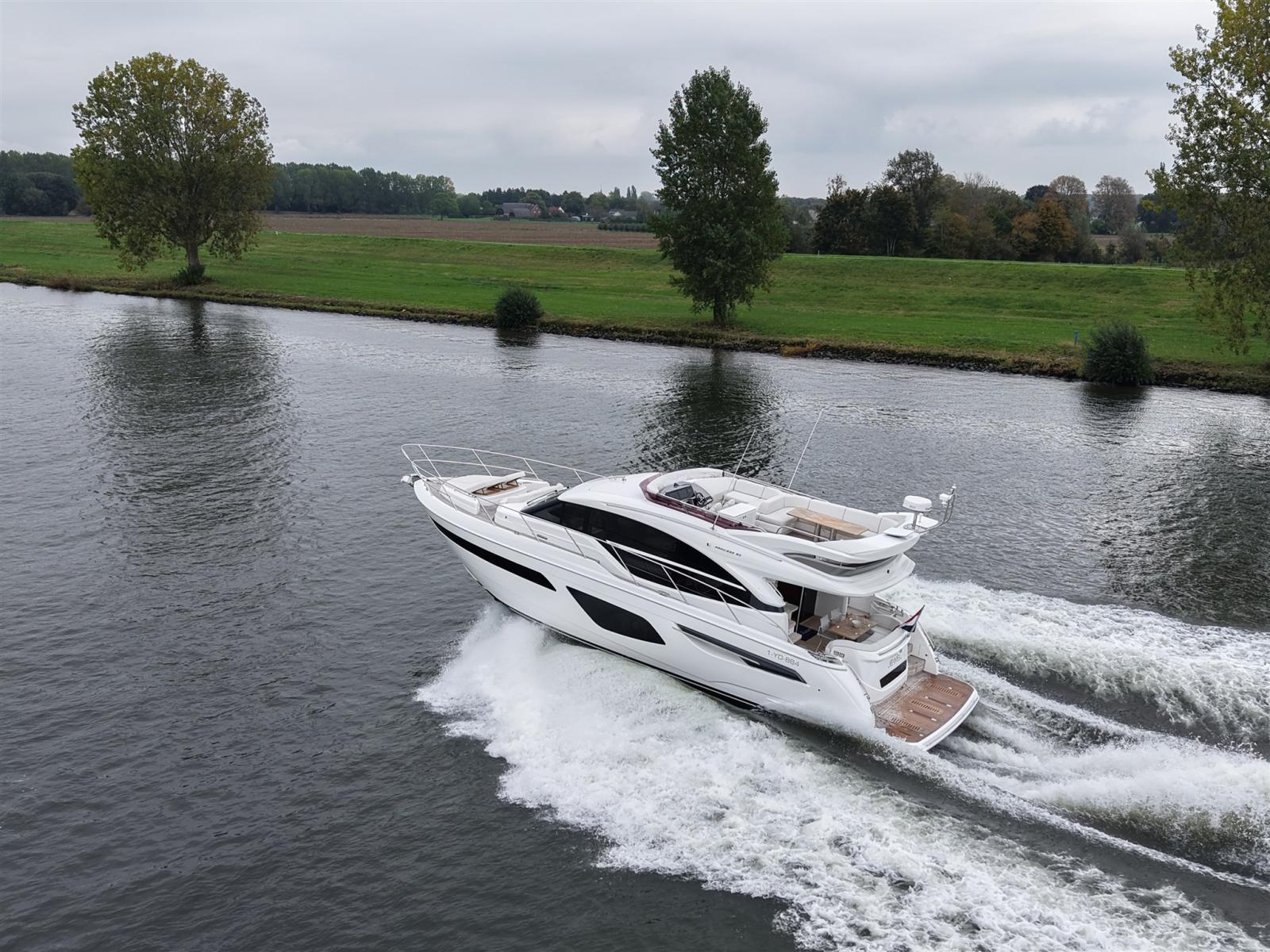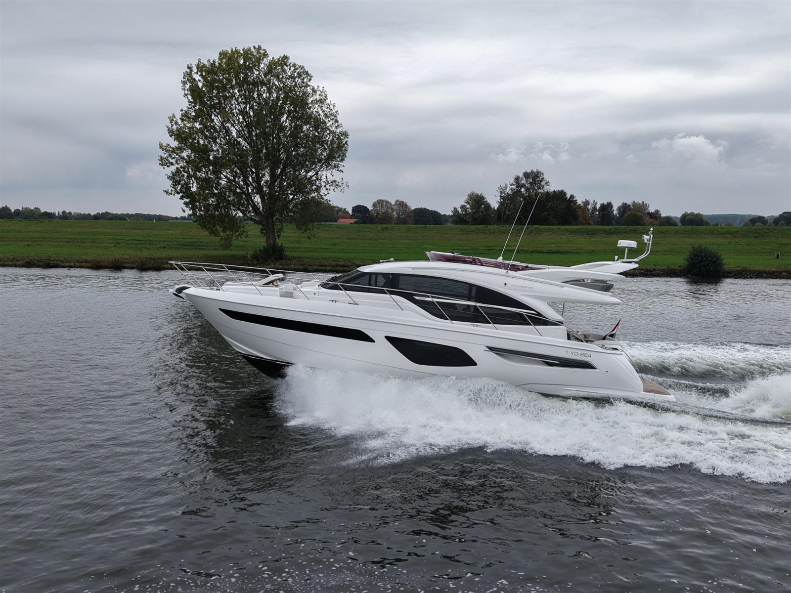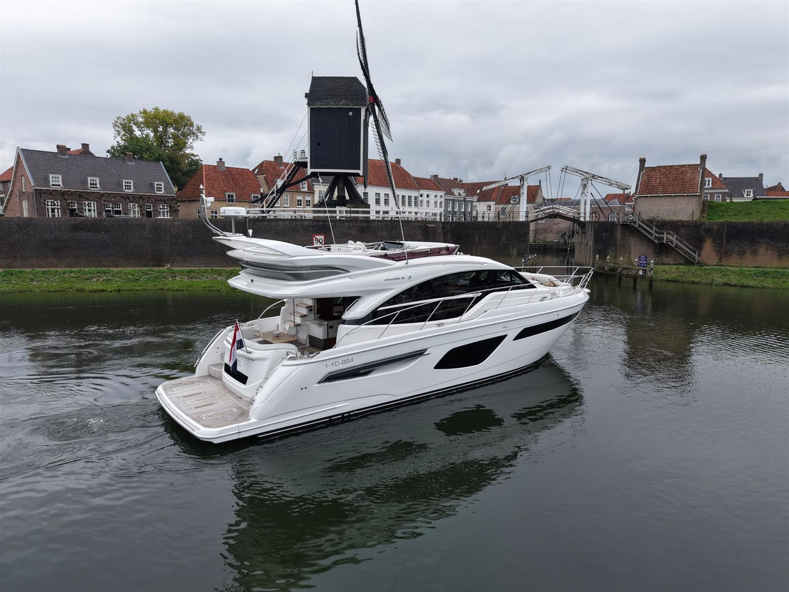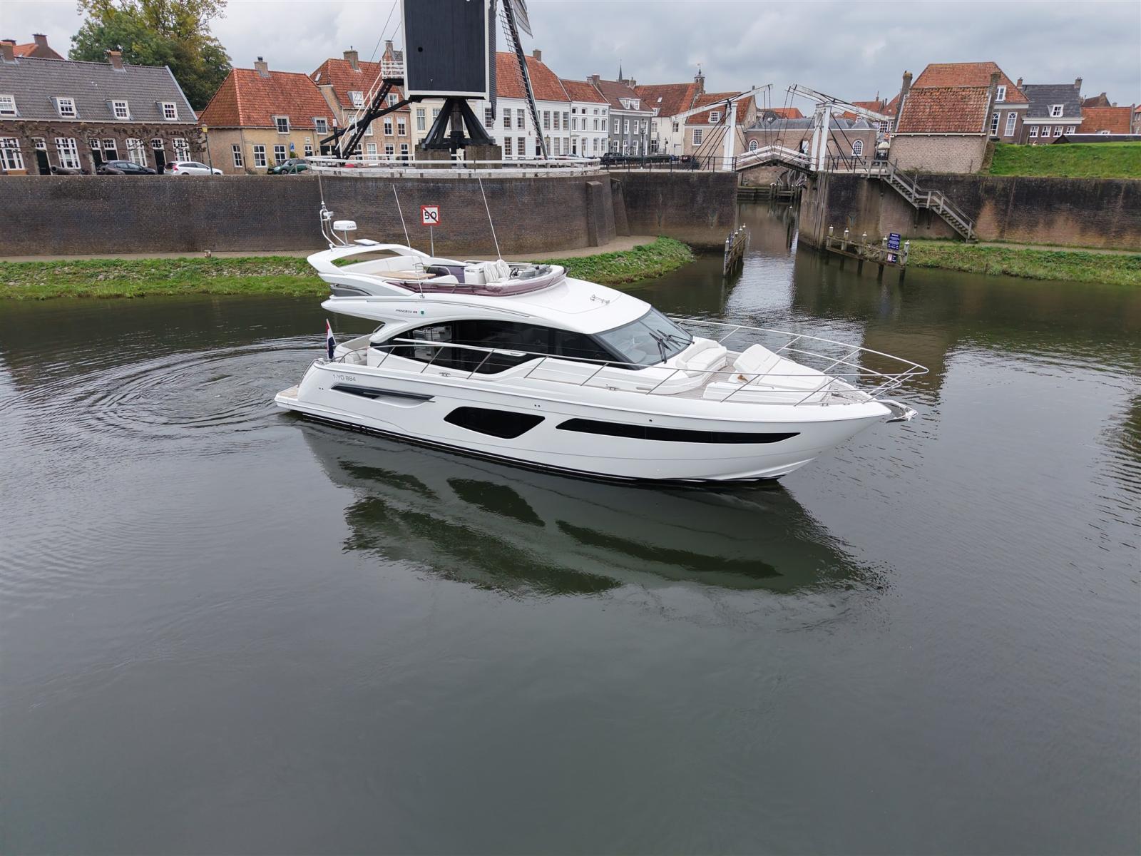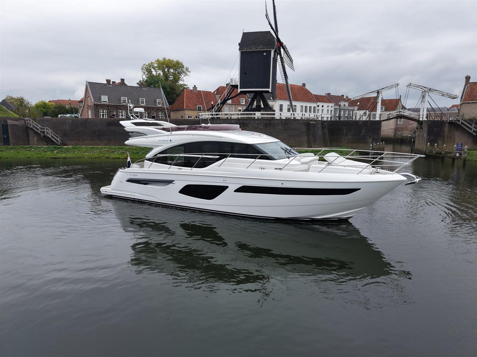 Ce Princess F55 bien entretenu de l’année modèle 2020 est équipé, entre autres, d’un stabilisateur gyroscopique seakeeper, d’une connexion Internet Starlink et d’un générateur de 17,5 kw.