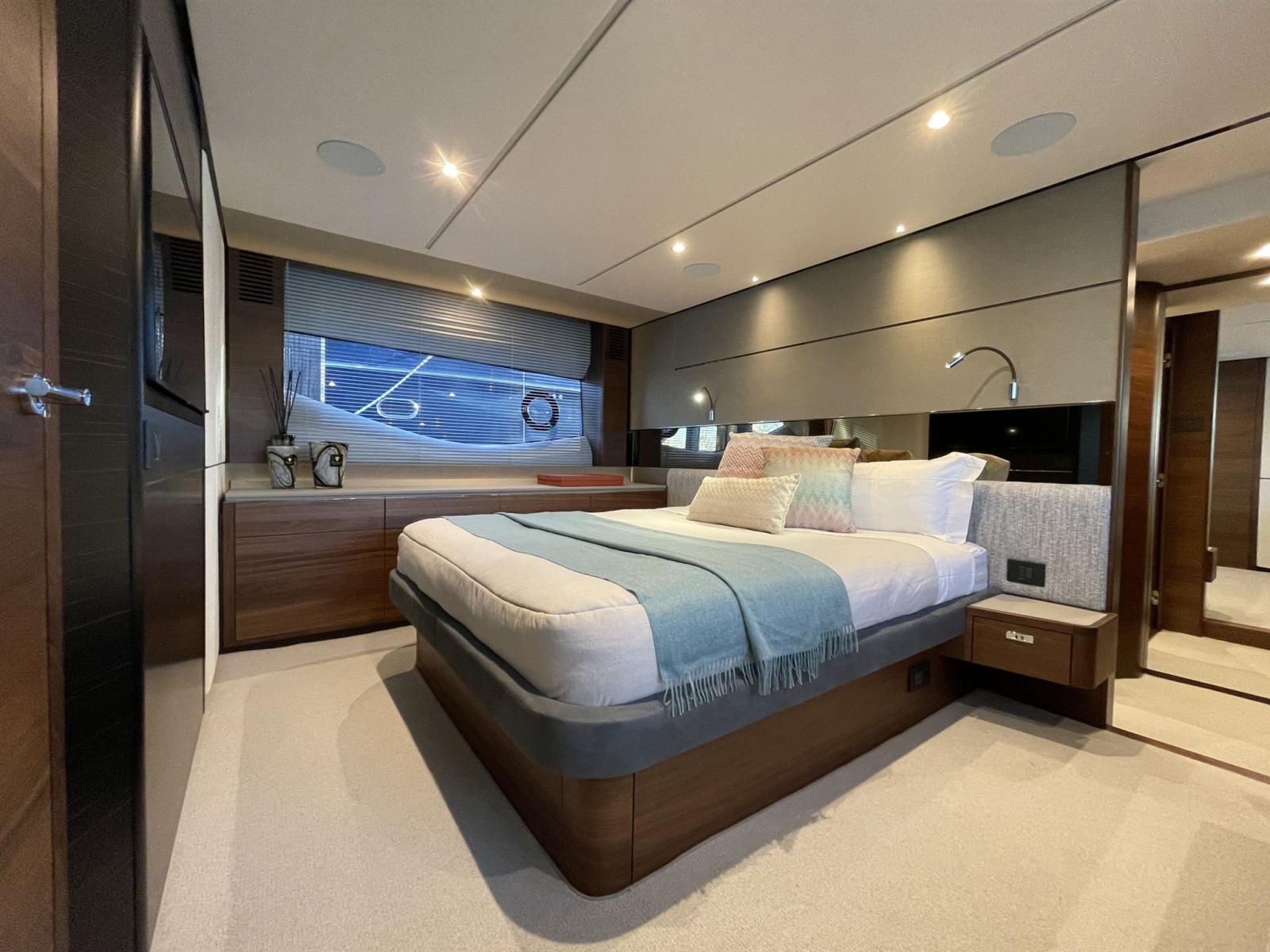 Cette Princess S66 de 2022 est indéniablement présente. Sa forme élégante et profilée dégage une ambiance prédatrice. Une coque en V profond légère tient cette promesse avec une agilité époustouflante allant jusqu’à 38 nœuds. Lorsqu’il est ancré, la paix s’installe sur son pont richement meublé avec, entre autres, un vaste coin salon sur le pont avant et une « passerelle sportive » intégrée aux lignes du navire avec suffisamment de places pour tous les invités. La plateforme hydraulique de baignade et le garage à tenders constituent la base idéale pour toutes sortes de sports nautiques.