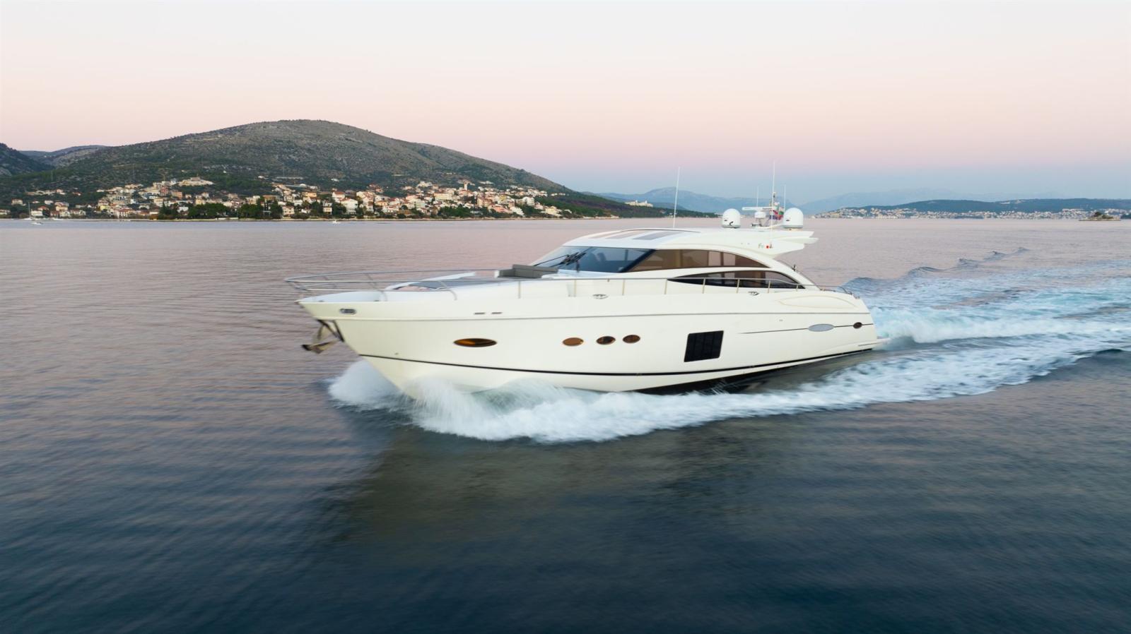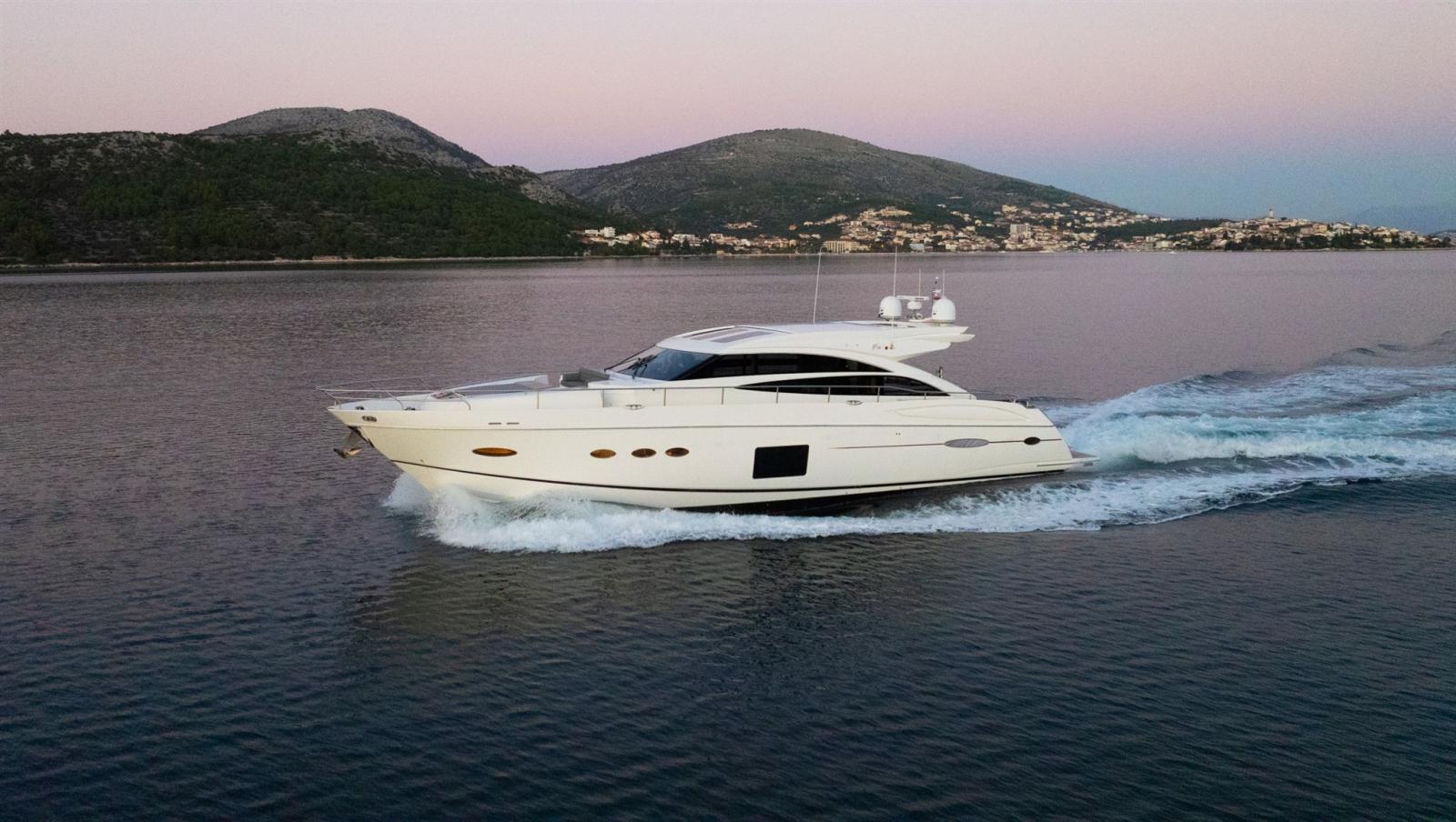 Cette belle Princess V72 de 2012 n’a fonctionné que 789 heures et a été livrée neuve par nos soins en tant que concessionnaire officiel Princess au premier propriétaire actuel. Le bateau a été bien entretenu au fil des ans et équipé de diverses améliorations. En 2023, le pont en teck et le bardage extérieur ont été renouvelés, les écrans Raymarine ont été remplacés en 2016 et l’ensemble de la climatisation a été revu en 2022.