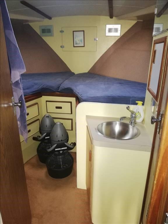 Cockpit en teck (refait en 2022) - coussins complets avec proue - générateur - chaudière - auvent et cockpit - pilote automatique et échosondeur Garmin - Banque de batteries 2024 - valve de pêche à la traîne.