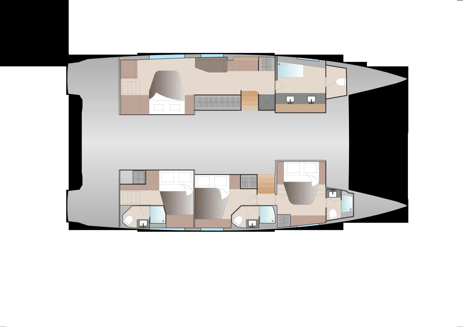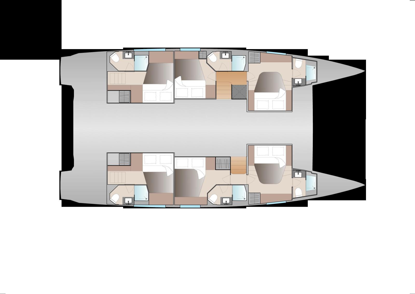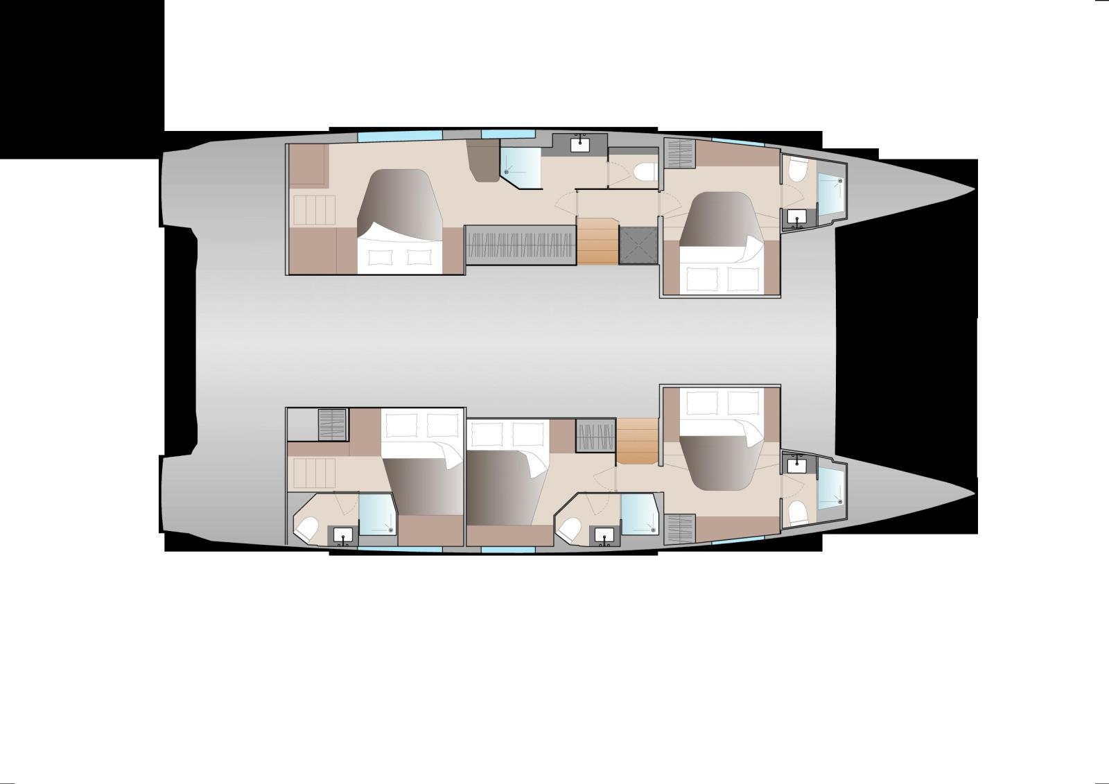 Cabines : Disponible en plusieurs configurations (4, 5 ou 6 cabines), l'Aura 51 propose :