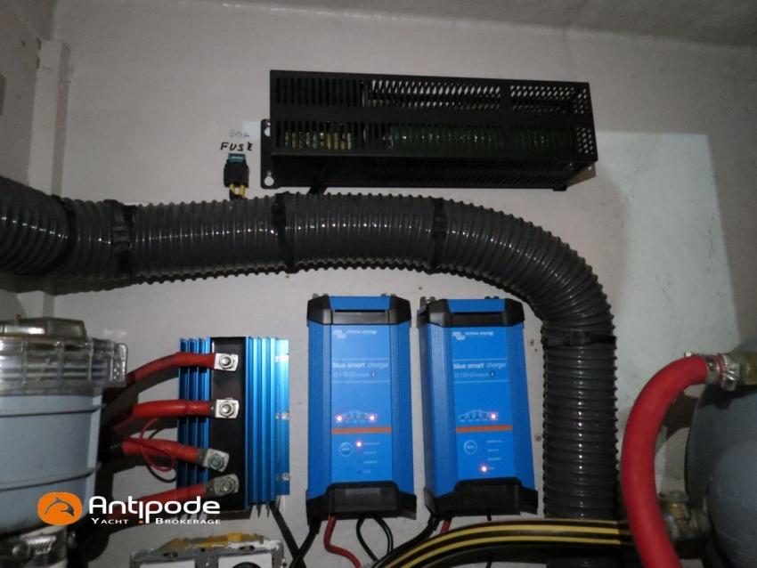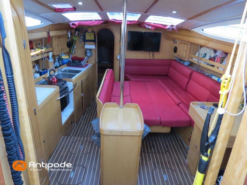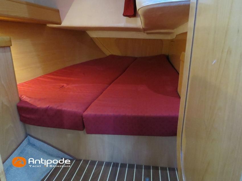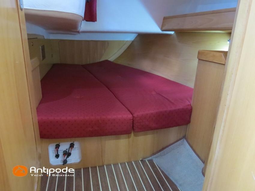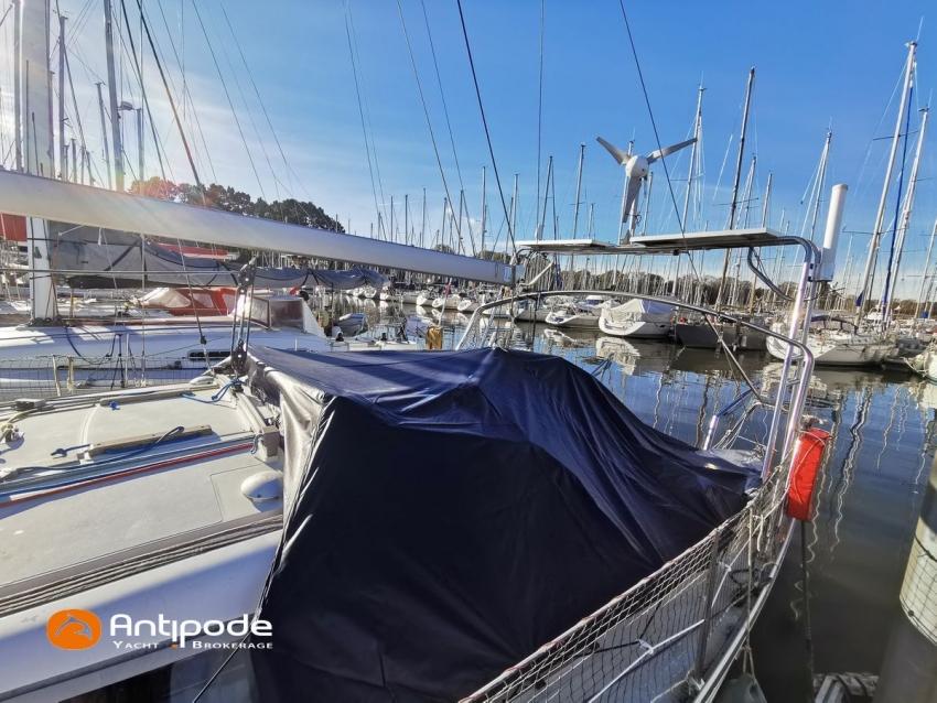 FEELING 39 DI, 2008, VOLVO D2-55, 55 cv (1679 h), Propulseur d'étrave, Version d'aménagement intérieur 1 cabine avant, 2 cabines arrières, 1 cabinet de toilette et douche, Planchers stratifiés, Selleries carré tissu, Draps housses sur mesures pour chaque cabine, Table de carré convertible en couchette double, pieds électriques synchronisés avec télécommande, Manivelle électrique - E-Wincher, Bout-dehors amovible en inox et sous-barbe (2013), Table de cockpit avec abattants bois, Housse de table de cockpit, Barre à roue inox repliable, gainée cuir (cuir remplacé en 2023), Capote de roof (2014), Bimini top cockpit (2013), Taud d'hivernage de cockpit sur mesure (remplacé en 2024), Guindeau électrique 1000W - Lofrans, Bossoirs avec palan de levage d'annexe, Portique arrière pour panneaux solaires et éolienne (2013), Grand-voile full batten, 3 bandes de ris - Incidences 2016, Rail de guindant de grand voile + chariots de lattes - Facnor, Prises de ris automatiques (3 drosses / 3 ris remplacées en 2023), Lazy-bag de grand voile - 2016, Génois sur enrouleur - Incidence 2008, Génois sur enrouleur Série 100 Voyage - Elvström (2014) (écoutes remplacées en 2023), Etai largable avec système de tension, Voile de brise avec 1 ris pour étai largable, Tourmentin (2014), Tangon aluminium (2014), Gennaker 60m² sur emmagasineur - Incidence 2017 , Pilote automatique in board Raymarine 6000 avec télécommande (2022), Centrale de navigation Raymarine ST 60, Sonde changée en 2022 (plus de speedo - vitesse GPS uniquement), Répétiteurs cockpit - Raymarine ST60, GPS / lecteur de carte à la table à carte - Raymarine C80, Cartographie électronique, Radar avec radôme sur support de mât, Transpondeur AIS (émetteur récepteur) - Nomad (2021), VHF ASN à la table à carte - RAY 54E, Tablette Apple & boitier de protection étanche + fixations sur colonne de barre et à la table à carte (2018), VHF portable - Icom IC-M91D (2021), Antenne 4G, Radio-CD + HP, Hauts-parleurs cockpit (radio CD), Télévision 32 pouces Samsung basse tension dans le carré, Balise de détresse - Ocean Signal (exp. Oct 2026), Prise de quai 220 V + rallonge 40m + 2 chargeurs de batteries Victron Blue Smart 30A remplacés en 2024 (1 pour batterie moteur & 1 pour batteries Lithium), Batterie service - 1 x Lithium Lifepo4 300ah (2023) (couplée avec batterie propulseur), Batterie propulseur - 1 x Lithium Lifepo4 300ah (2025), Prises intérieures 220 V (x3) et prises USB - USB-C dans carré et cabines, Contrôleur / gestionnaire de batteries avec pilotage par smartphone, Pompe de cale électrique supplémentaire gros débit , Convertisseur 12 / 220v - 1500W (2025), Réservoir rigide eaux noires - 40 litres, Panneaux solaires - 2 x 100W (2013), Eolienne - Airbreeze 200w (2013 - déposée et révisée 2024 (contacts, roulements, peinture), Douchette de cockpit eau chaude / eau froide, Pompe à pied eau de mer, Feux de navigations à Leds, Eclairages intérieurs à Leds, Radeau de survie Hauturier 8 places (mise en service 2022 - révisé Novembre 2025), Mouillage principal ancre CQR 16kg + 50m de chaine de 10mm + cablot, Mouillage secondaire, Amarres et défenses, Annexe - 3D Tender Ultralight 270 grise avec coque aluminium (2019), Moteur hors-bord - Torqueedo 1300S avec 2 batteries, Visible Bretagne. Pour plus d'informations ou pour fixer un rendez-vous de visite, contact : Jean-Baptiste Lemaire 06 10 25 00 03 - jb@antipode-yachts.com