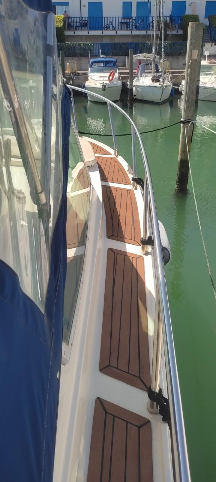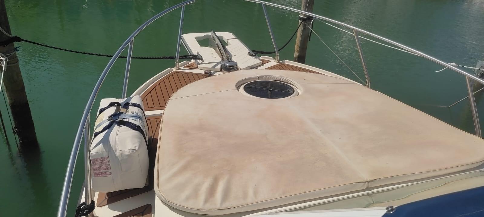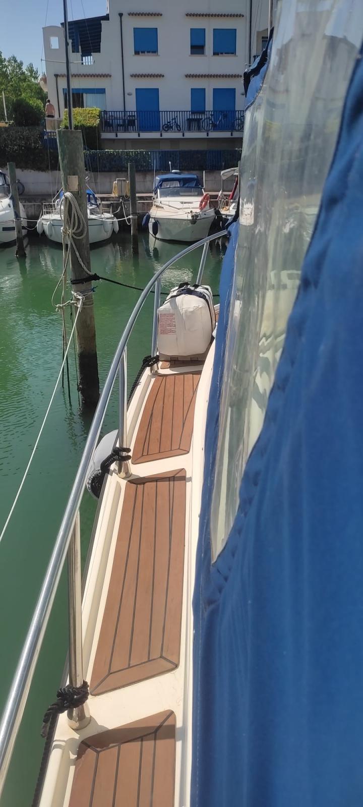 Alarme gaz, Eau sous pression, 3 Batteries (nuove 2022), Passavant en teck (sintetico), Flaps électriques, Extincteur(s) fixe(s), Indicateurs de flaps, Lavabo dans le cockpit, Éclairage de courtoisie, Plateforme arrière, Pompe de cale automatique, Porte latérale, Cockpit en teck (sintetico), Prise de quai, Guindeau électrique.