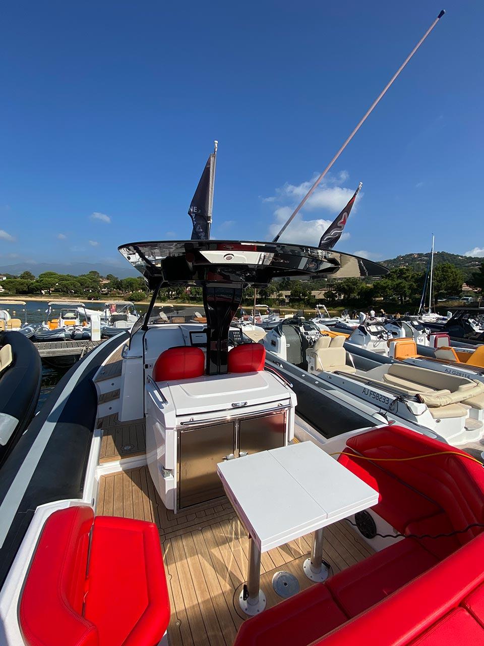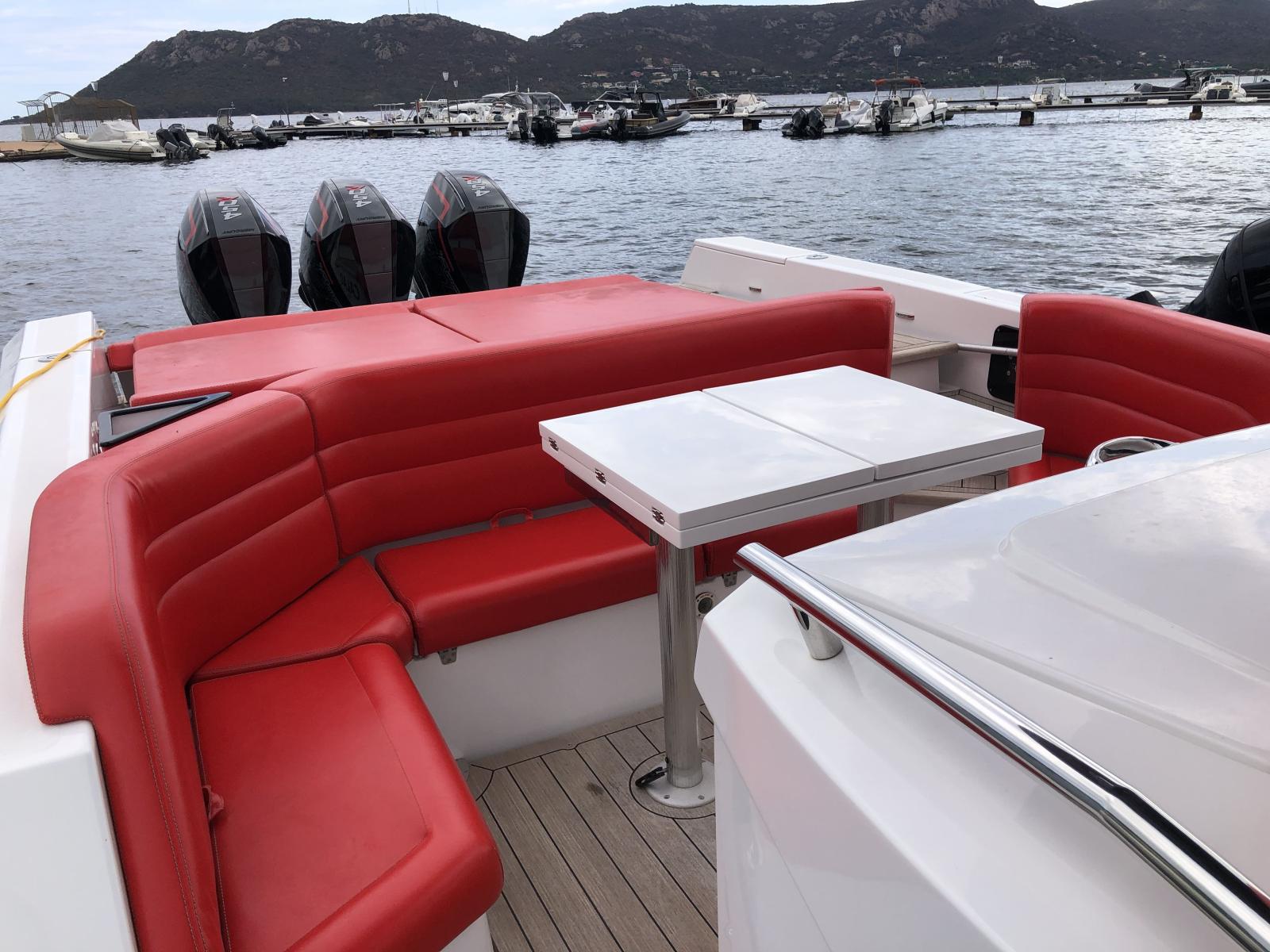 • Équipements : électronique complète, sellerie haut de gamme, poste de pilotage ergonomique, grand espace de bain de soleil avant et arrière, cabine spacieuse avec salle d’eau.