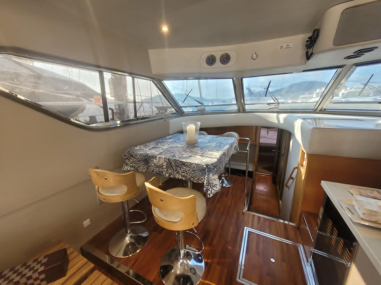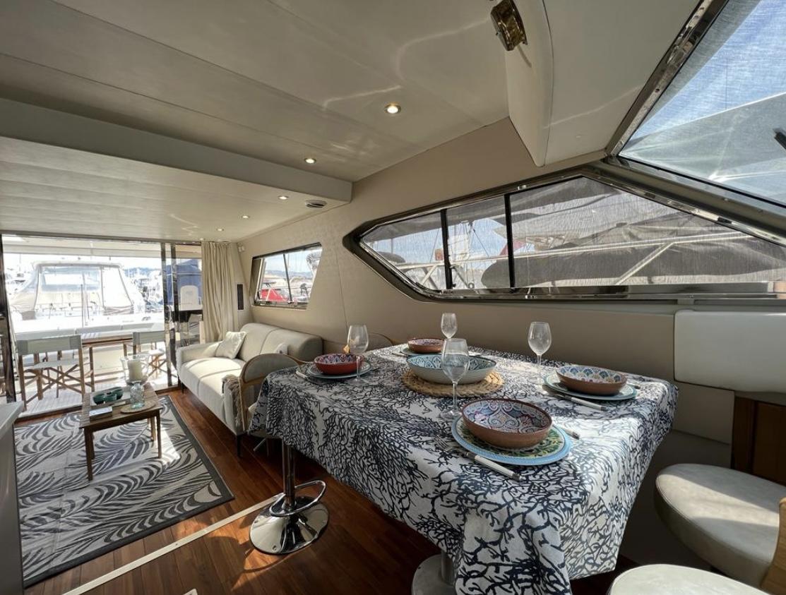 Équipé d’une passerelle hydraulique, d’un GPS Garmin tactile, d’un générateur, d’une climatisation, d’un propulseur d’étrave et de tout l’équipement nécessaire pour la navigation, ce bateau combine élégance, sécurité et confort moderne. Son entretien récent et les travaux techniques réalisés garantissent une fiabilité totale pour la croisière.